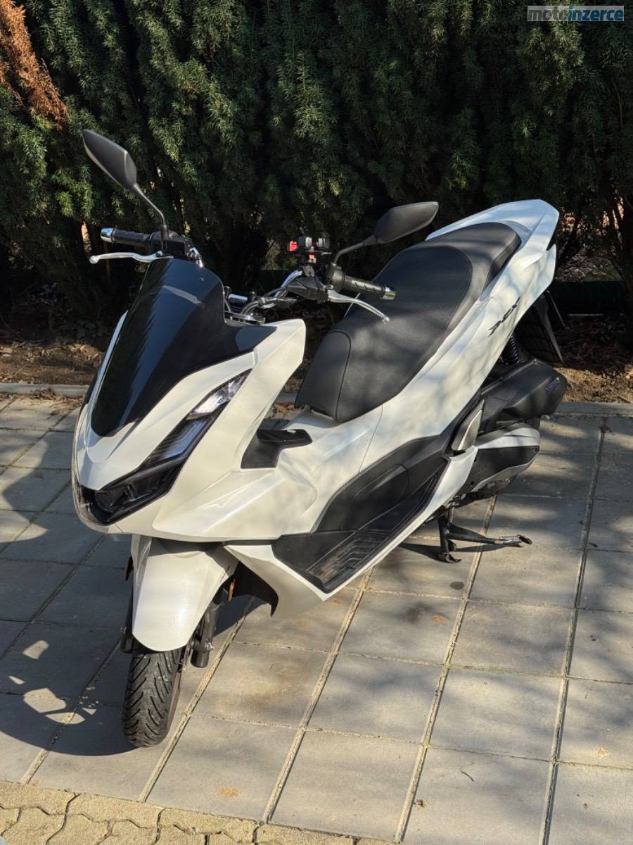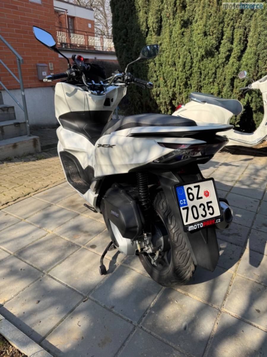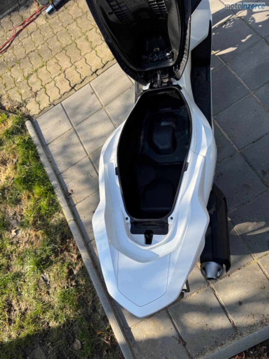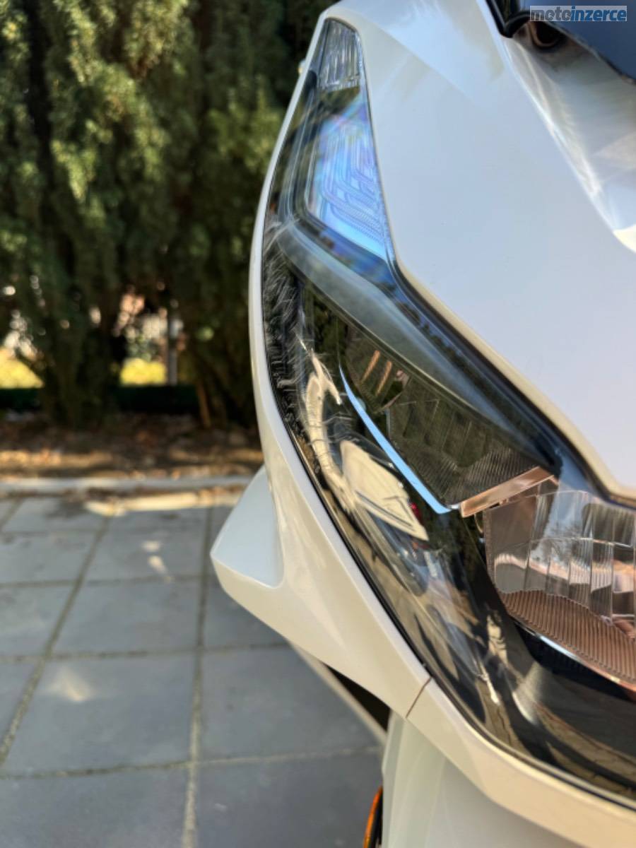 Rodám skútr Honda PCX 125, rok výroby 2022, v barvě Candy White. Aktuální nájezd činí 10 400 km.
