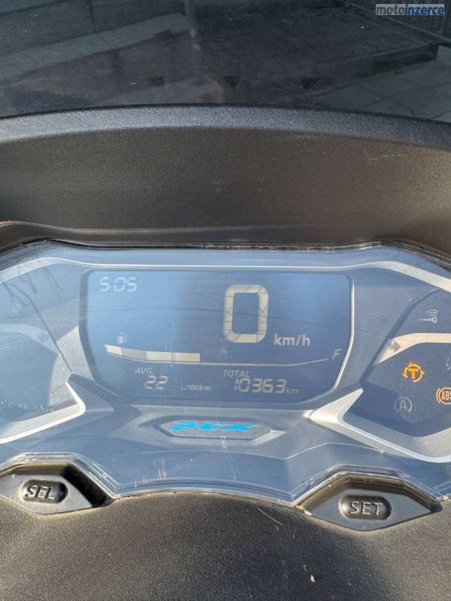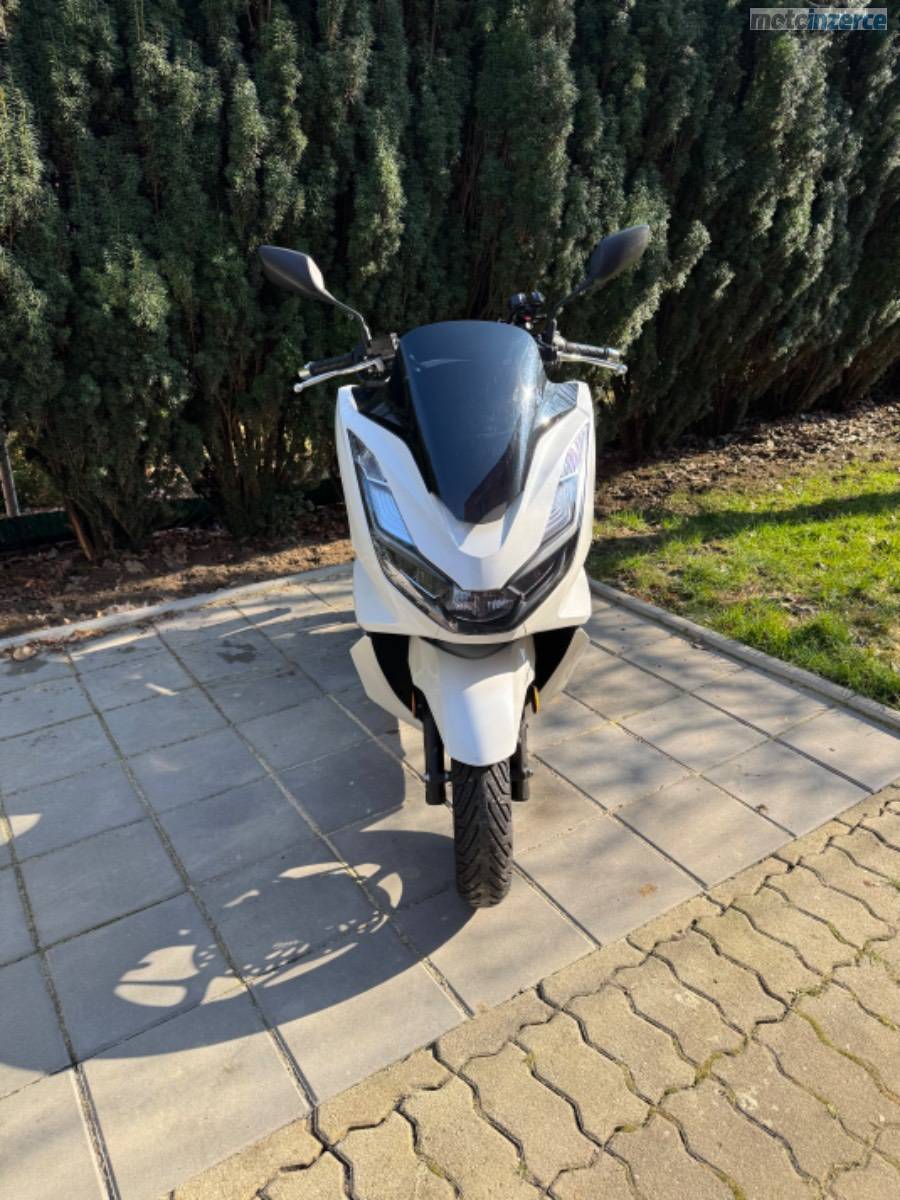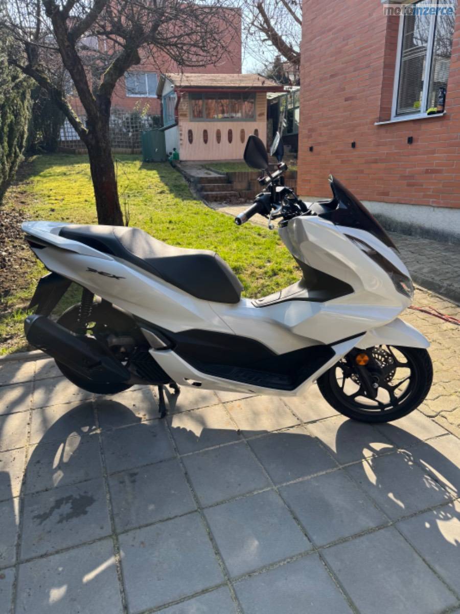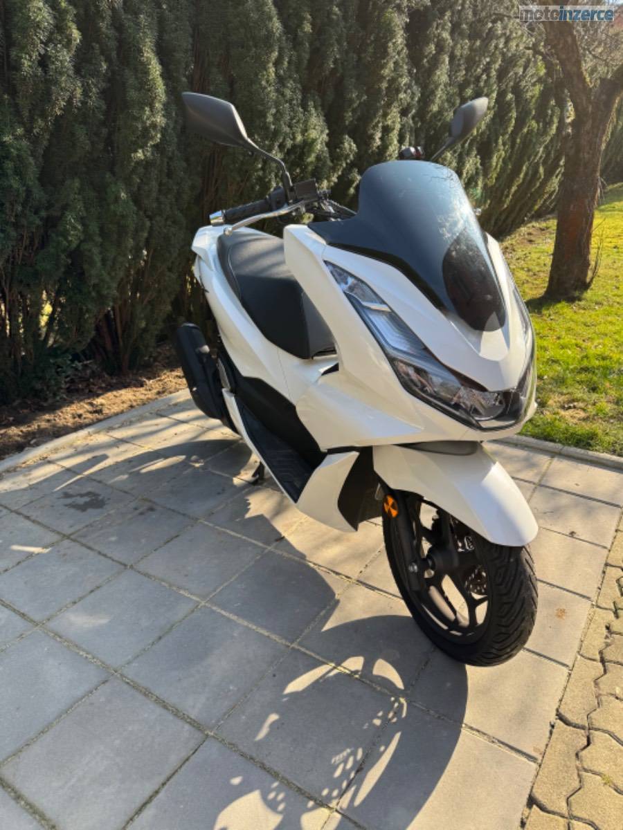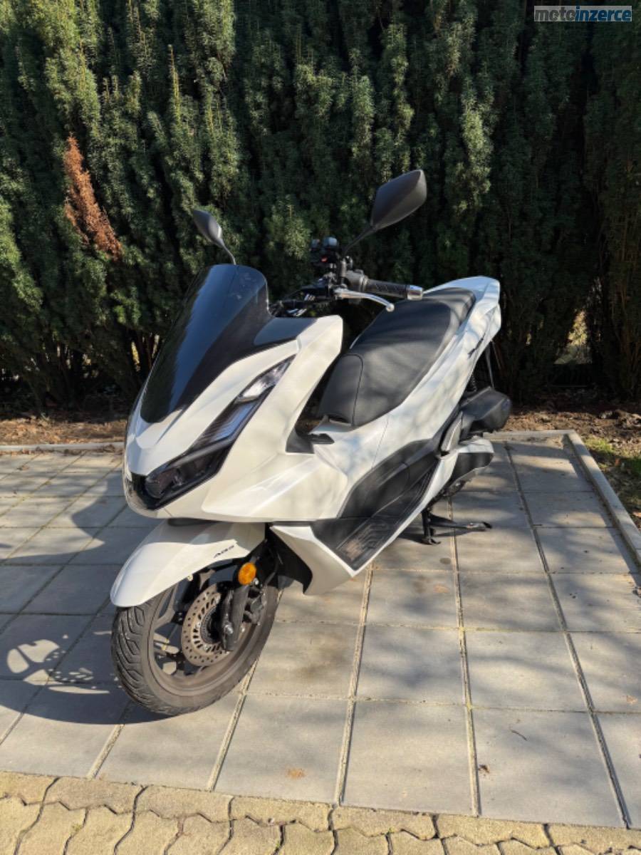 Rodám skútr Honda PCX 125, rok výroby 2022, v barvě Candy White. Aktuální nájezd činí 10 400 km.