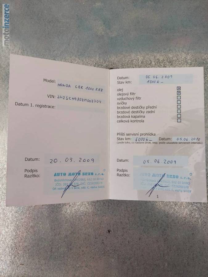 Původ uveden ČR Moto dovezeno ze SRN jako nové, v SRN nikdy neregistrováno a neježděno.