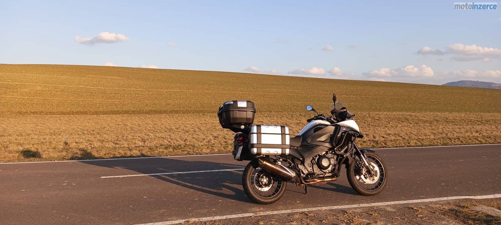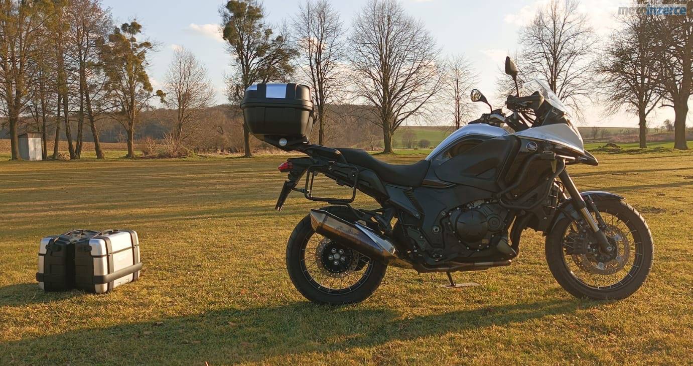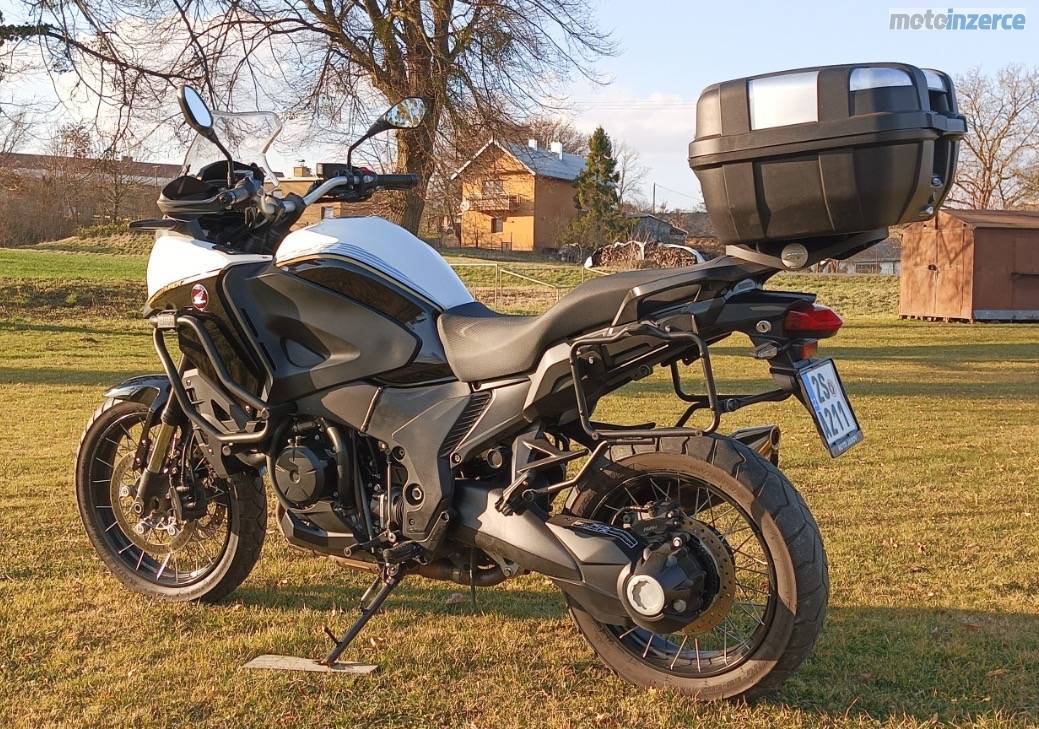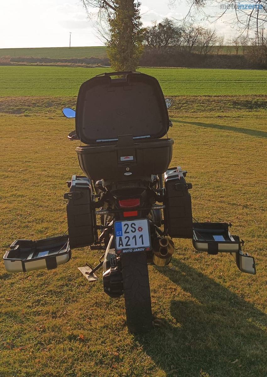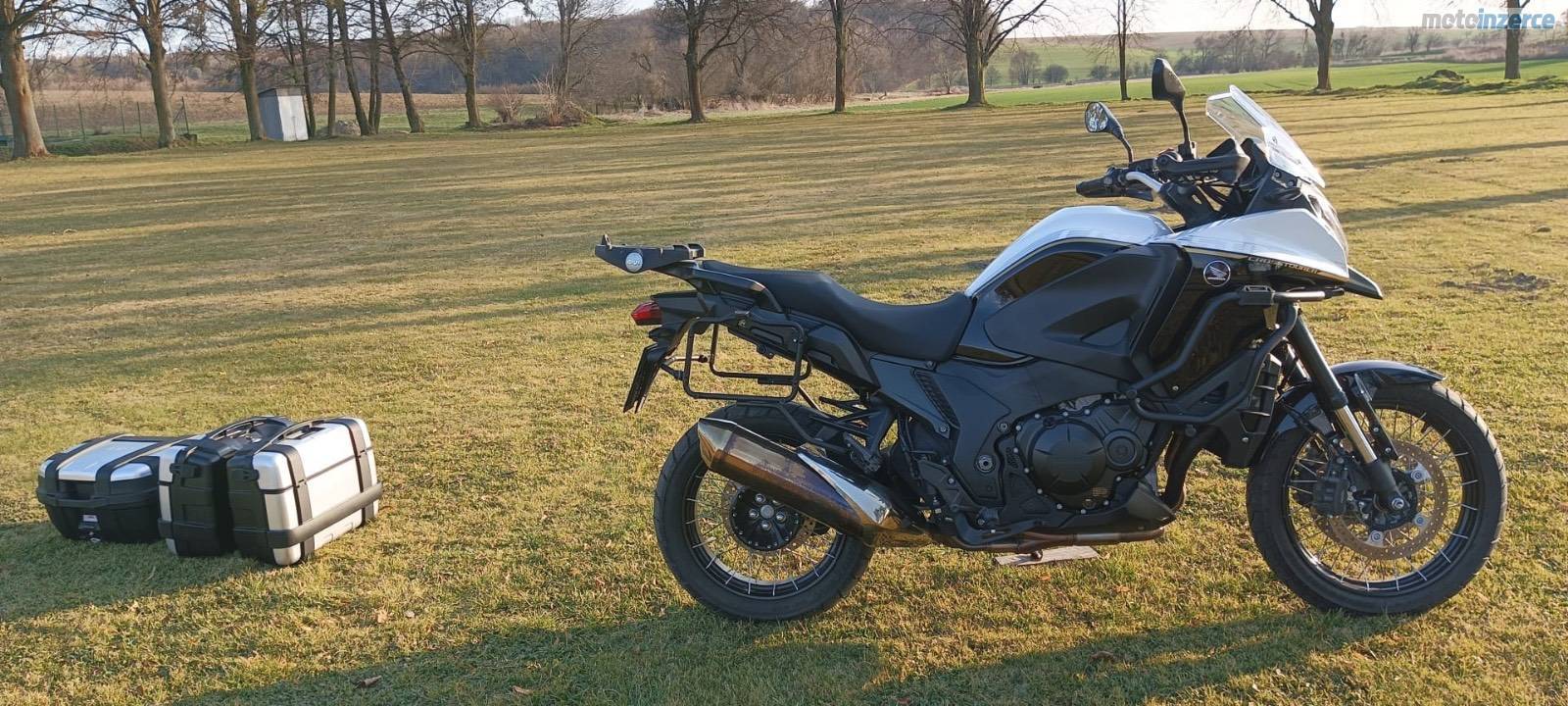 Prodám Hondu VFR 1200 X Crosstourer, připravena na sezónu, najeto pouze 11600 km, po zimní údržbě v servisu nový motorový olej, chladící kapalina, brzdová kapalina doložím fakturou. K motorce nové užitečné cestovní dopňky sada odnímatelných multifunkčních bočních kufrů, top case kufr s bočními držáky, plotnou na top case a také nové padací rámy GIVI, kardan, vyplétaná kola, vypínatelná kontrola trakce, ABS, osvědčený a silný čtyřválec do V od Hondy který baví.
