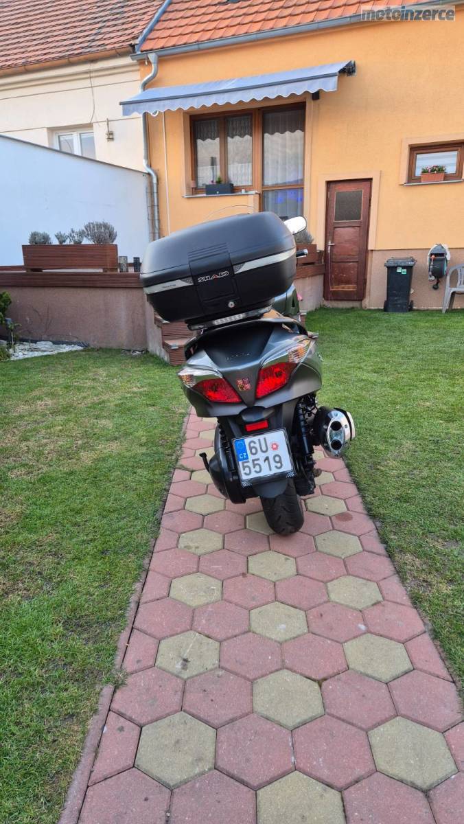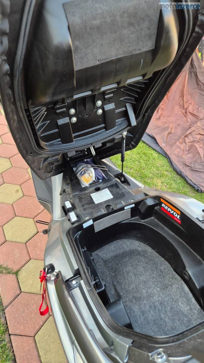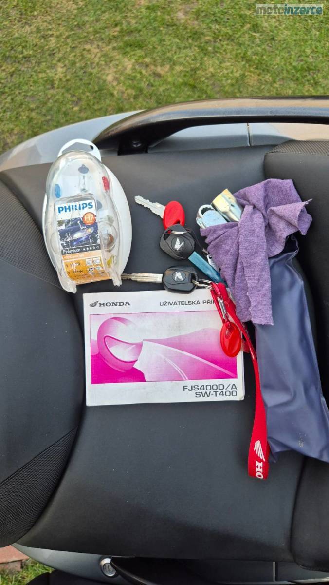 Prodám skútr Honda SW-t400, stříbrná metalíza, r.v. 2009, najeto 59.500 km, STK do 2.2029. Loni nové pneu. Pravidelný servis. Krásný velký, velice udržovaný a spolehlivý skútr. Garážovaný. 2x zásuvka na nabíjení (jedna pod sedlem a druhá v příhrádce pod řídítky). Dodělaný vypínač na výstražná světla. 2x klíče od skútru i od kufru a plachta na překrytí Tucano Urbano.
