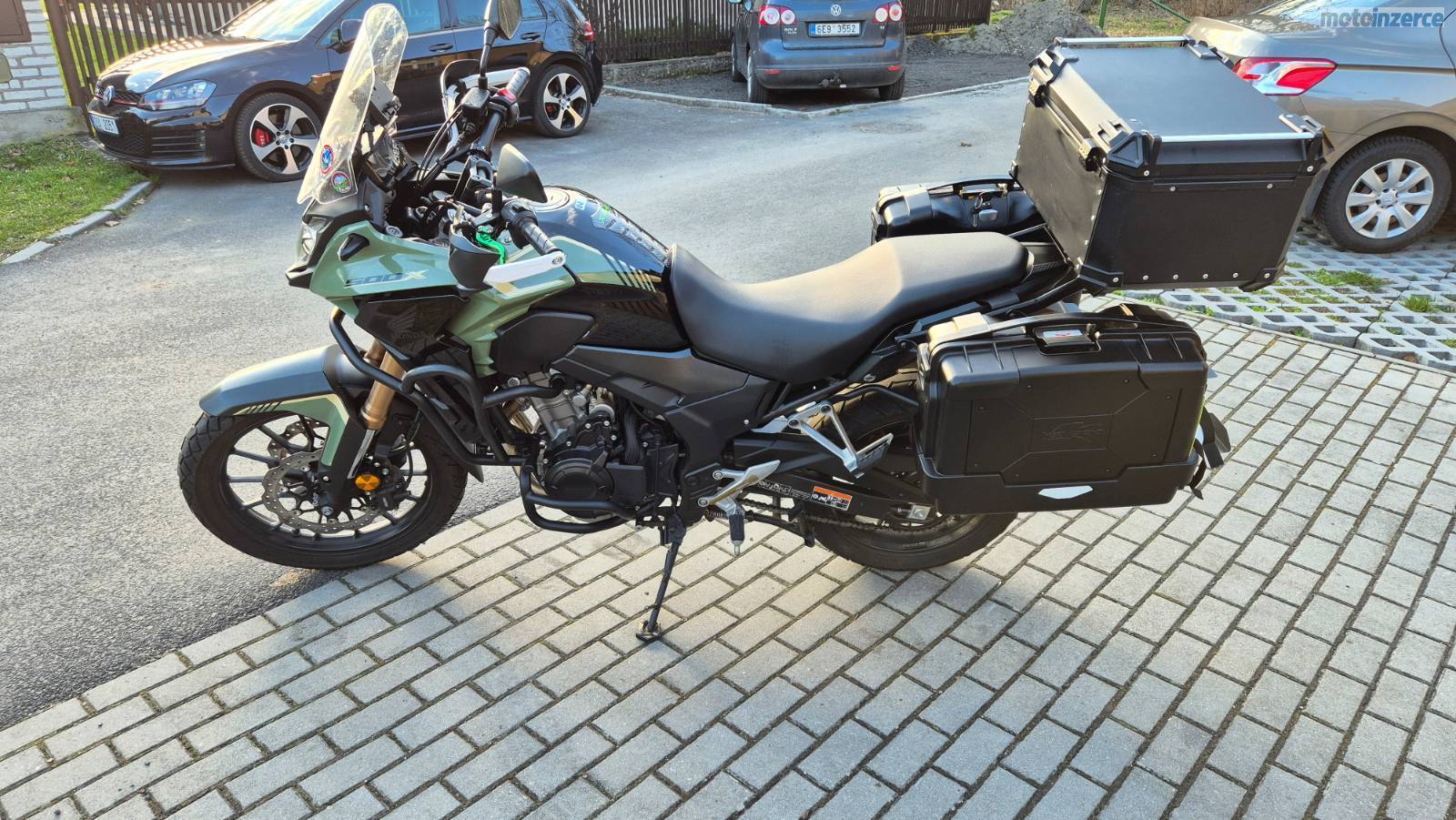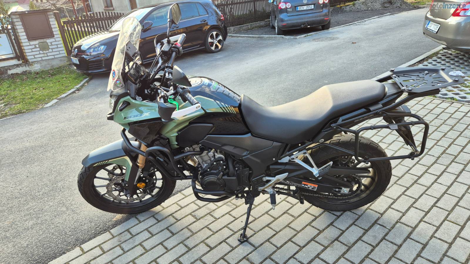 Prodám Hondu CB 500 x r.v. 2022 výbava kufry + držáky, blastry ACERBIS, nastavitelné páčky SHEFIS, hlavní stojan, padáky, držák telefonu, 12V zásuvka HONDA + přidám spodní kryt motoru (není na fotkách). Motorka je pravidelně servisovaná a ve velmi dobrém stavu.