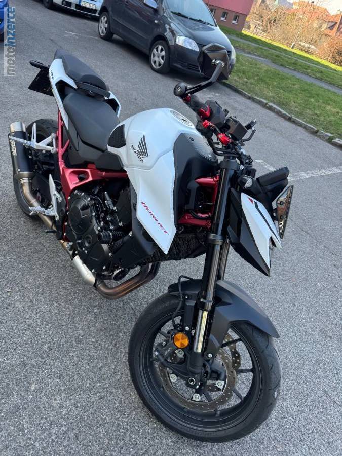 Honda Hornet 750, rok 2025, najeto 2200 km, 1. majitel, koupeno v Honda Jarov, 2x klíč, el. servisní kniha, quick shifter, laděný i originál výfuk, spousta doplňků stav nového motocyklu.