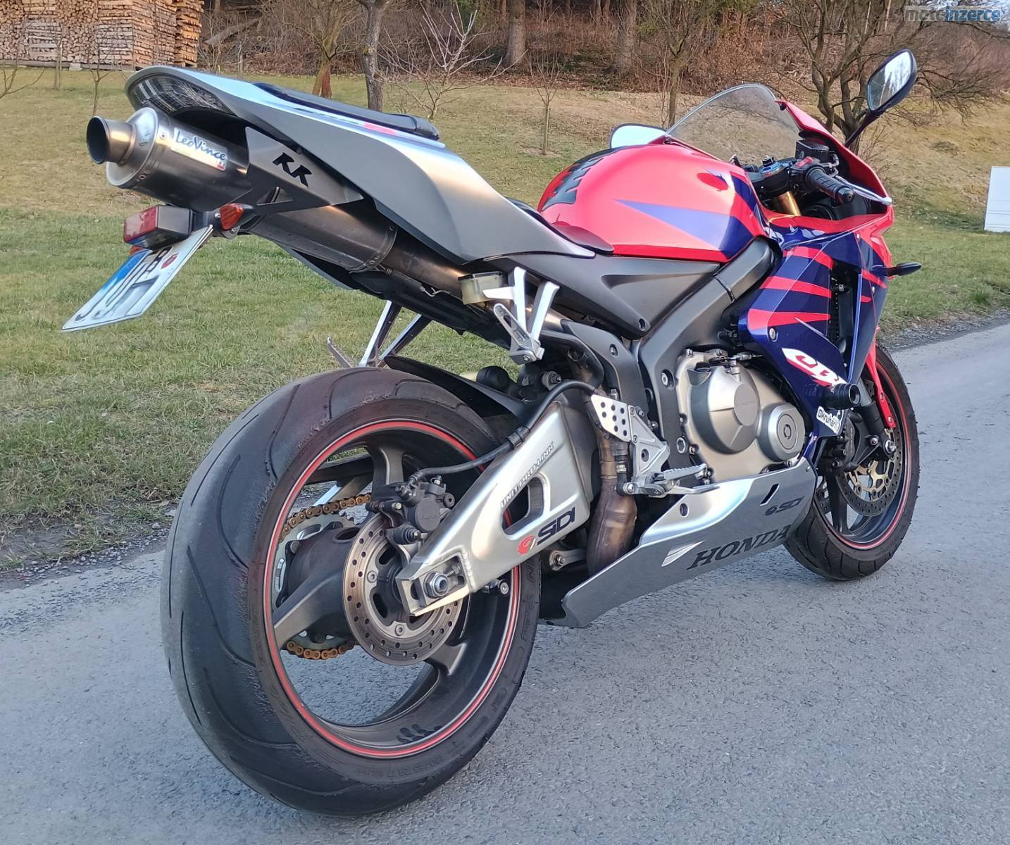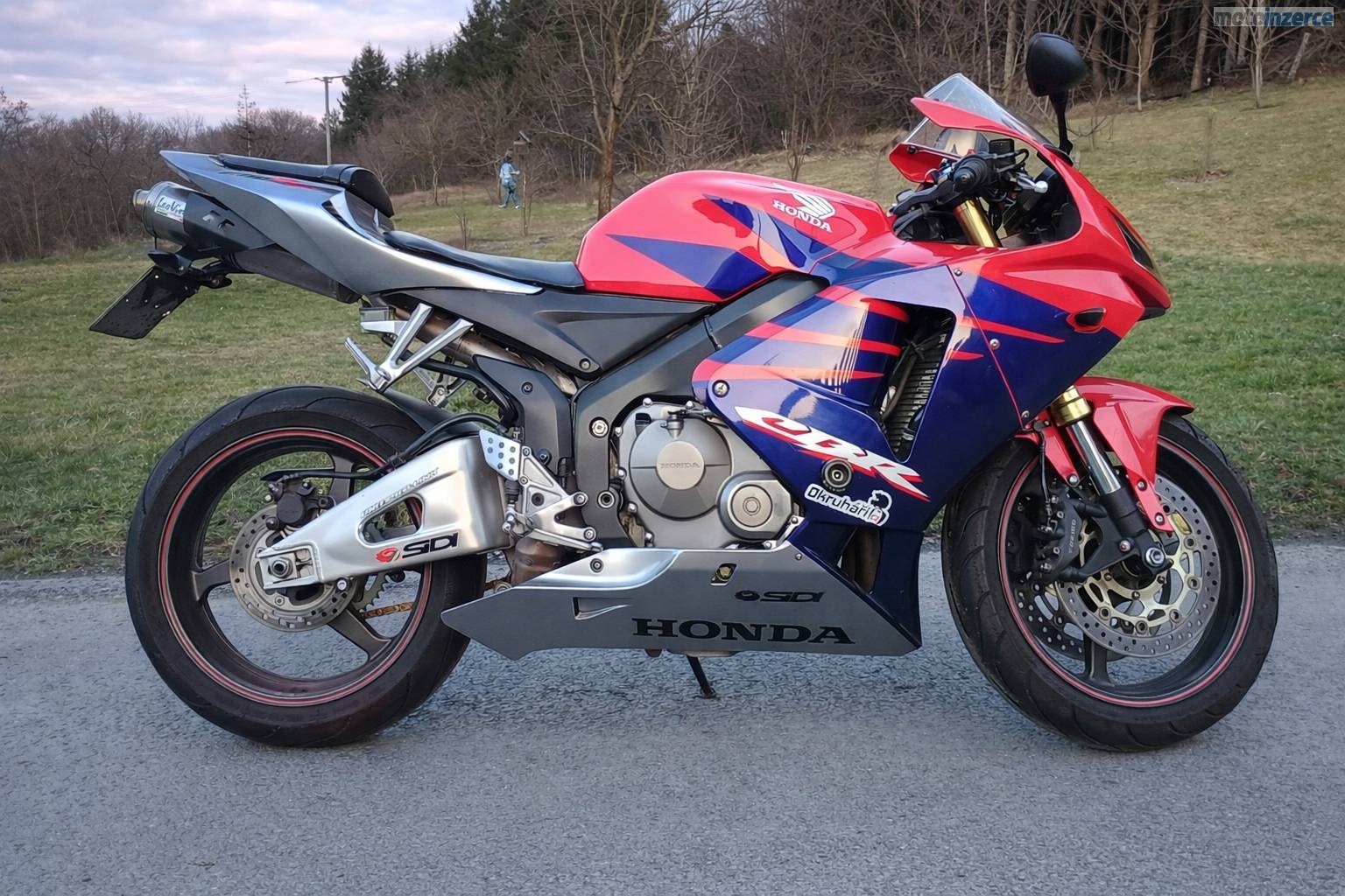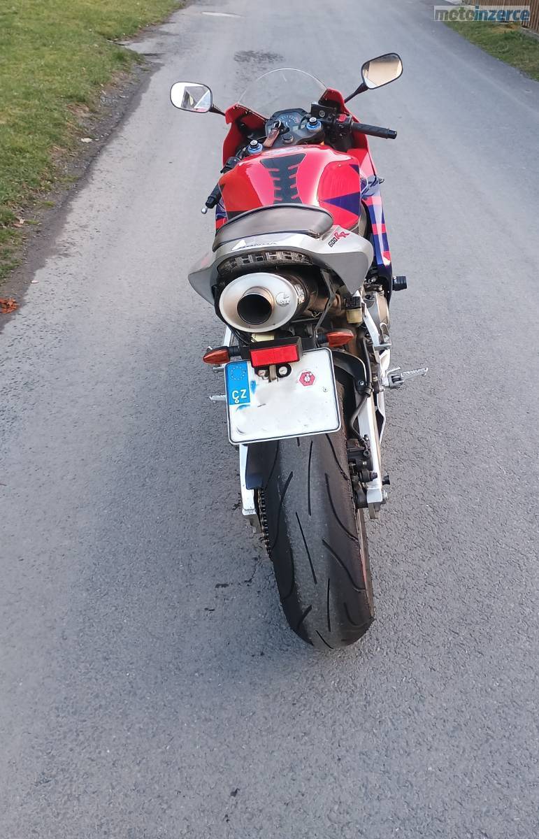 Prodám Honda CBR 600 RR, rok výroby 2005, výrobní číslo motoru PC37E, druhý majitel v ČR, 2 x klíče, stav tachometru 30.281 km, homologovaný laďák LeoVince prodám i originální výfuk, padací protektory, nová baterie, nová řetězová sada (zlata DID) + rozeta, nově přetěsněné tlumice včetně nového oleje, výměna brzdové kapaliny. Pro zájem volejte na tel. č. +420 604 914 308.