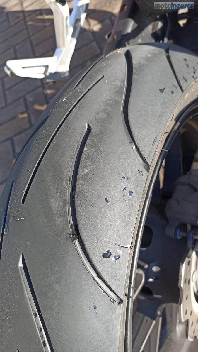 zánovní pneumatiky ( zadní cca 1500 km, přední cca 500km)