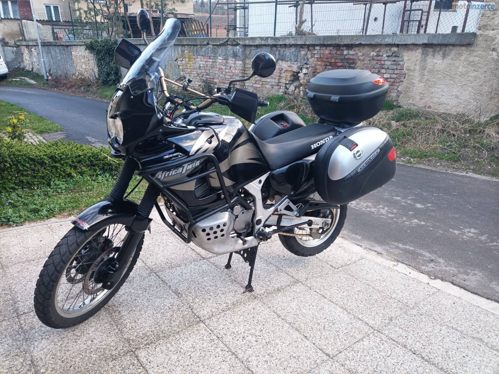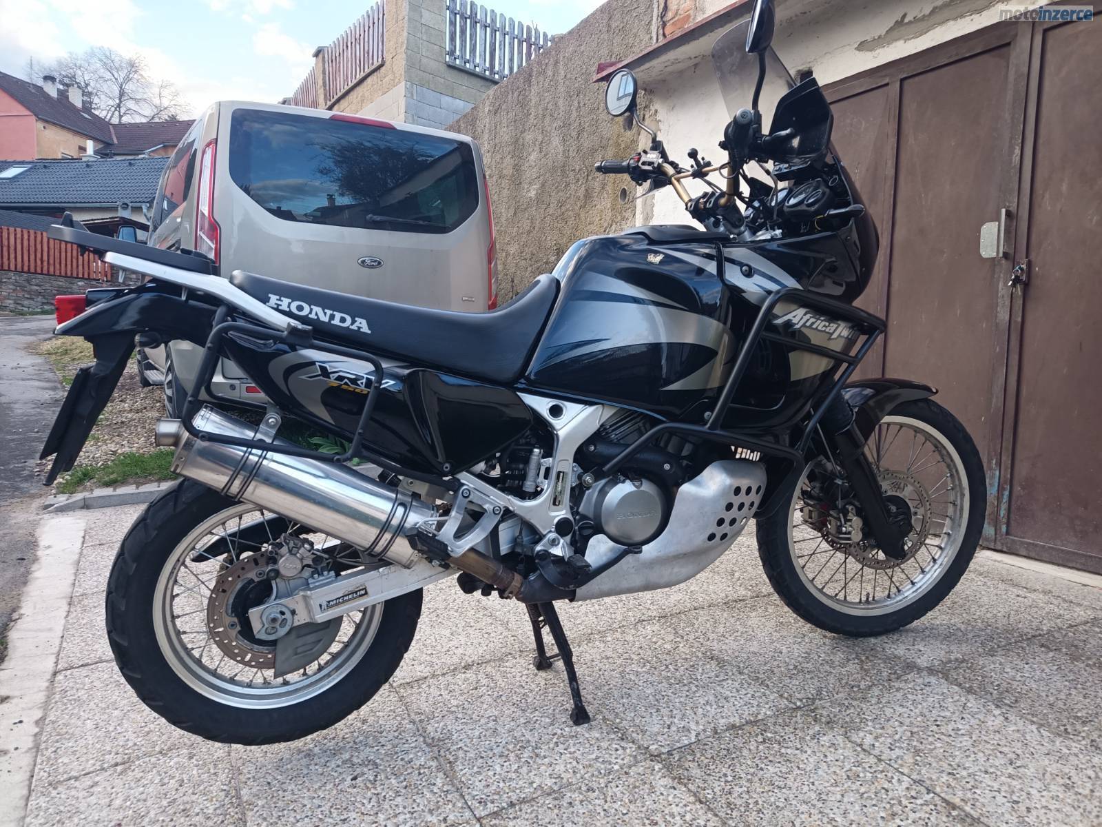 Prodám Honda Xrv 750 Africa twin rv. 2000 RD 07 44 kW. Moto vlastním 15let. Nový zadní výplet kolo přeložiskováno, nové desky + kotouče předek-zadek, nová řetězová sada D. I.D., nyní po výměně filtrů a oleje, lazená koncovka Leo Vince sbk +db Killer homologováno, k moto mám originál koncovku a pár věcí bych ještě našel. Prodám včetně kufru. Najezd cca 68xxx.