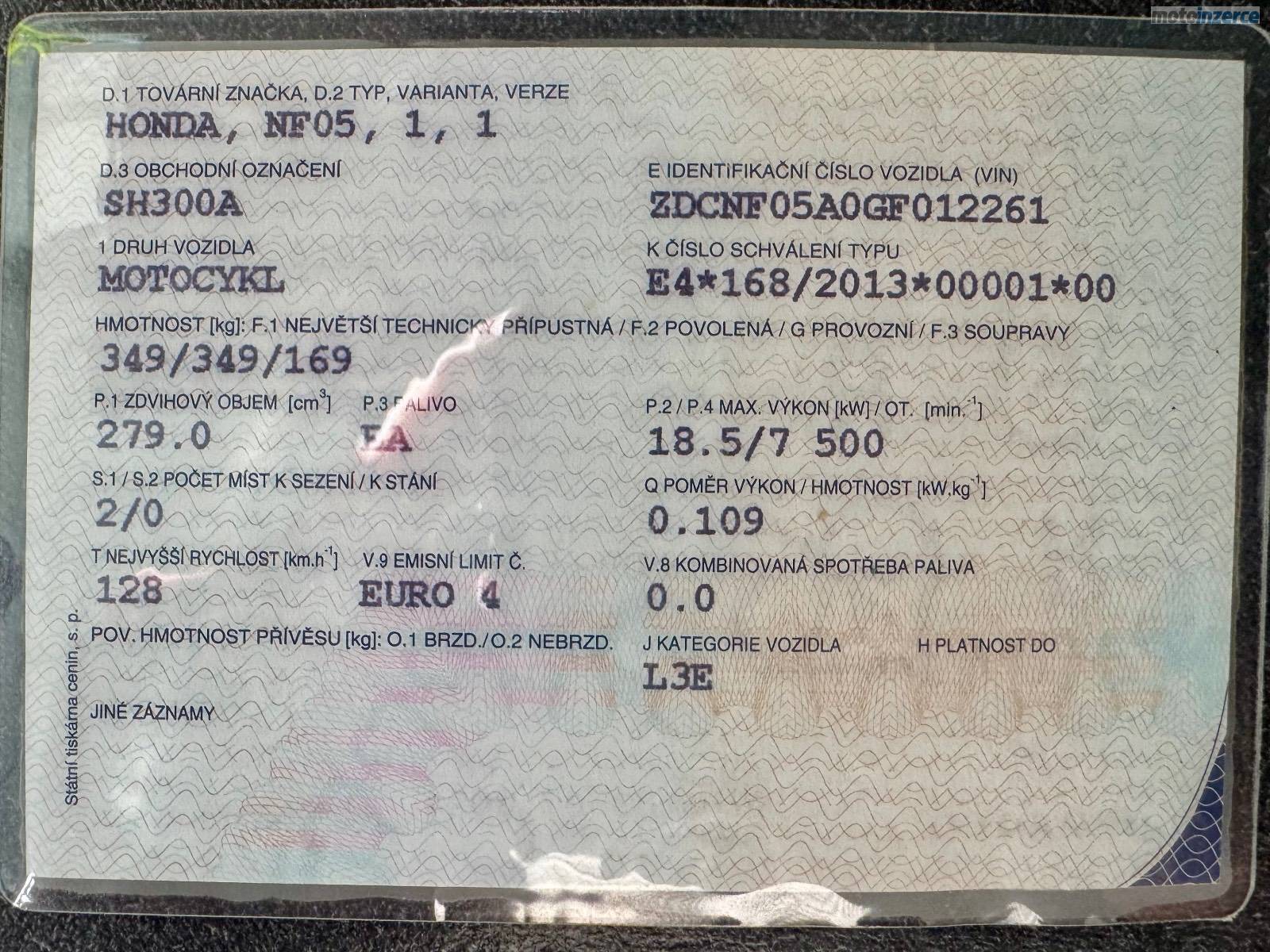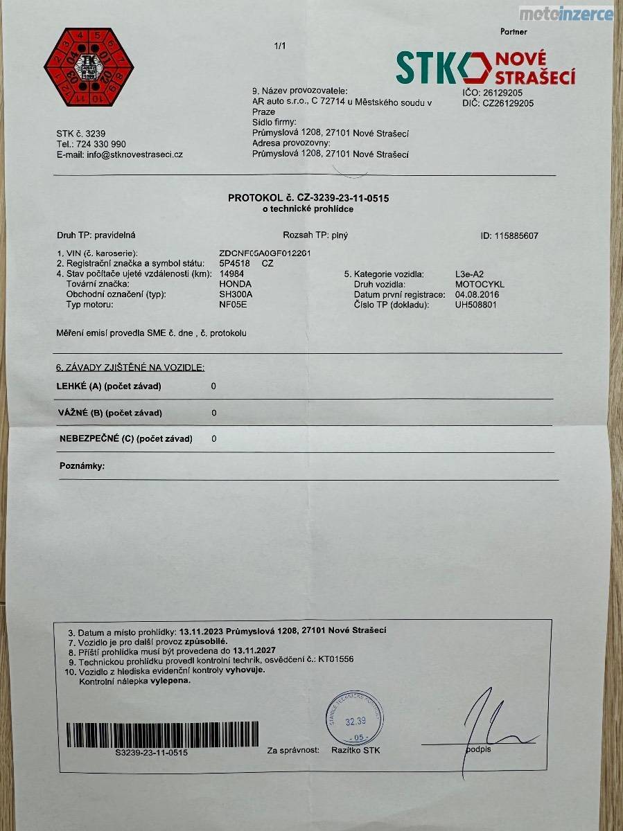 Prodám plně funkční a bezproblémový, spolehlivý skútr Honda SH300i.