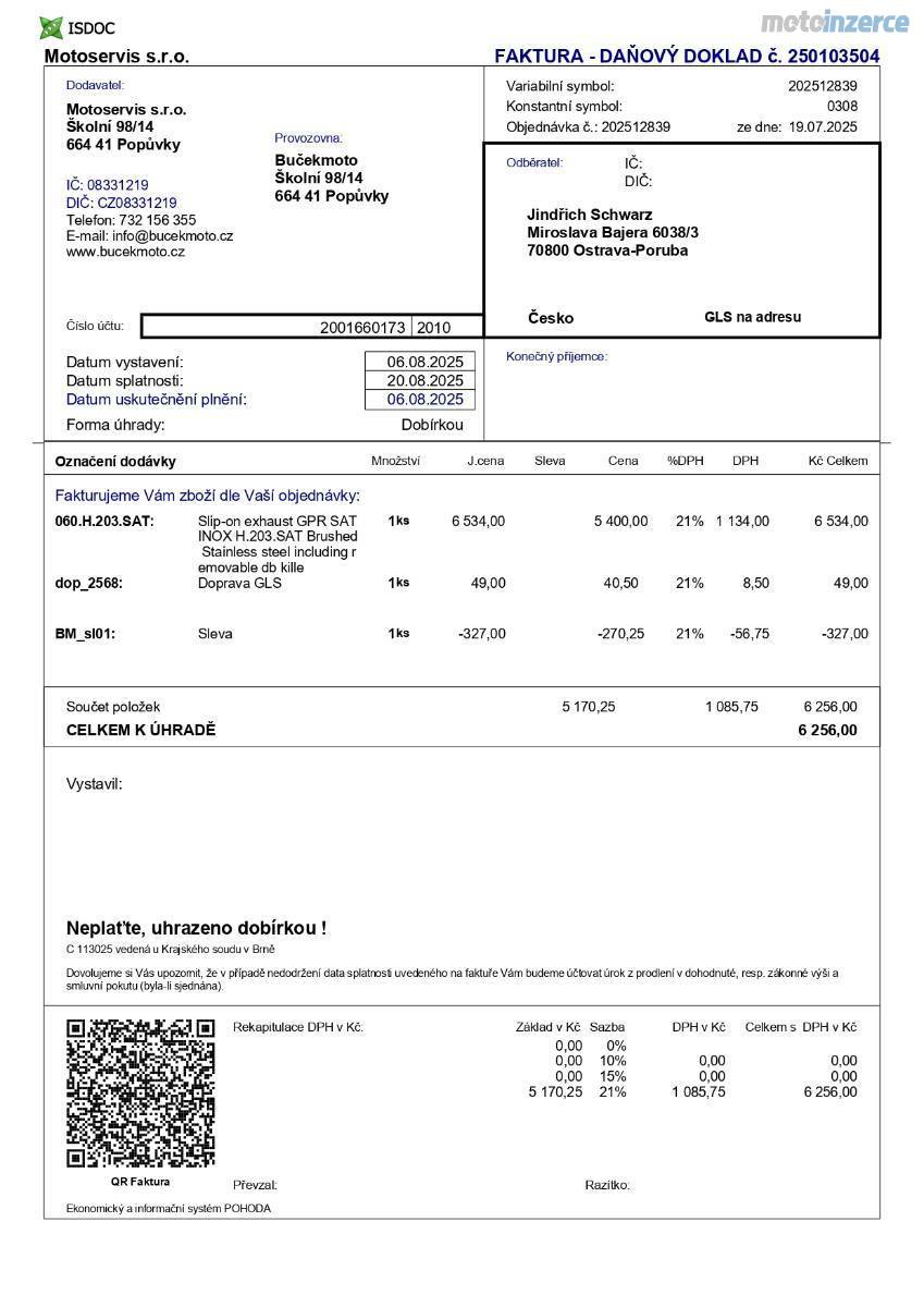 - nový laděný výfuk GPR (původní dám k motorce) cena 6500 Kč