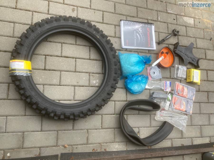 Přidám nějaké nové díly, ložiska, gufera kyvky, vodítko řetězu, brzdové destičky, páčky, pneumatiku, duši a další