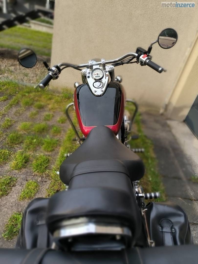 K motorce přidám spousta doplňků: široká řídítka Fehling Z-bar, batwing masku, otevřené výfuky se super zvukem, plexi štít, boční kufry a zadní válec.