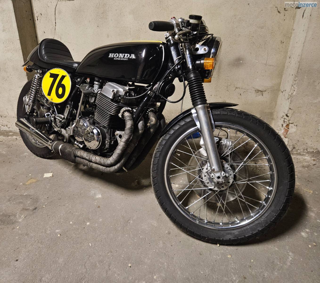 Prodám Honda CB 750 Four z roku 1977, přestavěnou na stylový café racer, elektrický startér včetně kicku, dva klíče, přepákování od švédské firmy Raask. Motorka je na veteránských značkách, odvzdušněné brzdy, nové svíčky, seřízené karburátory a nová baterie. Celkově jde o pěkný stroj se skvělým zvukem, ideální na odpočinkové ježdění a radost z klasiky. Pro více informací mě kontaktujte. Video zde: https://www. youtube. com/shorts/Auxzygf7Kzg