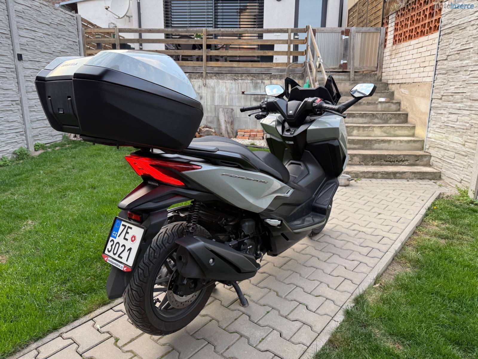 Prodám Honda Forza 350, rok výroby 9/2023, najeto 2600 km, s originálním bezklíčkovým kufrem Honda.