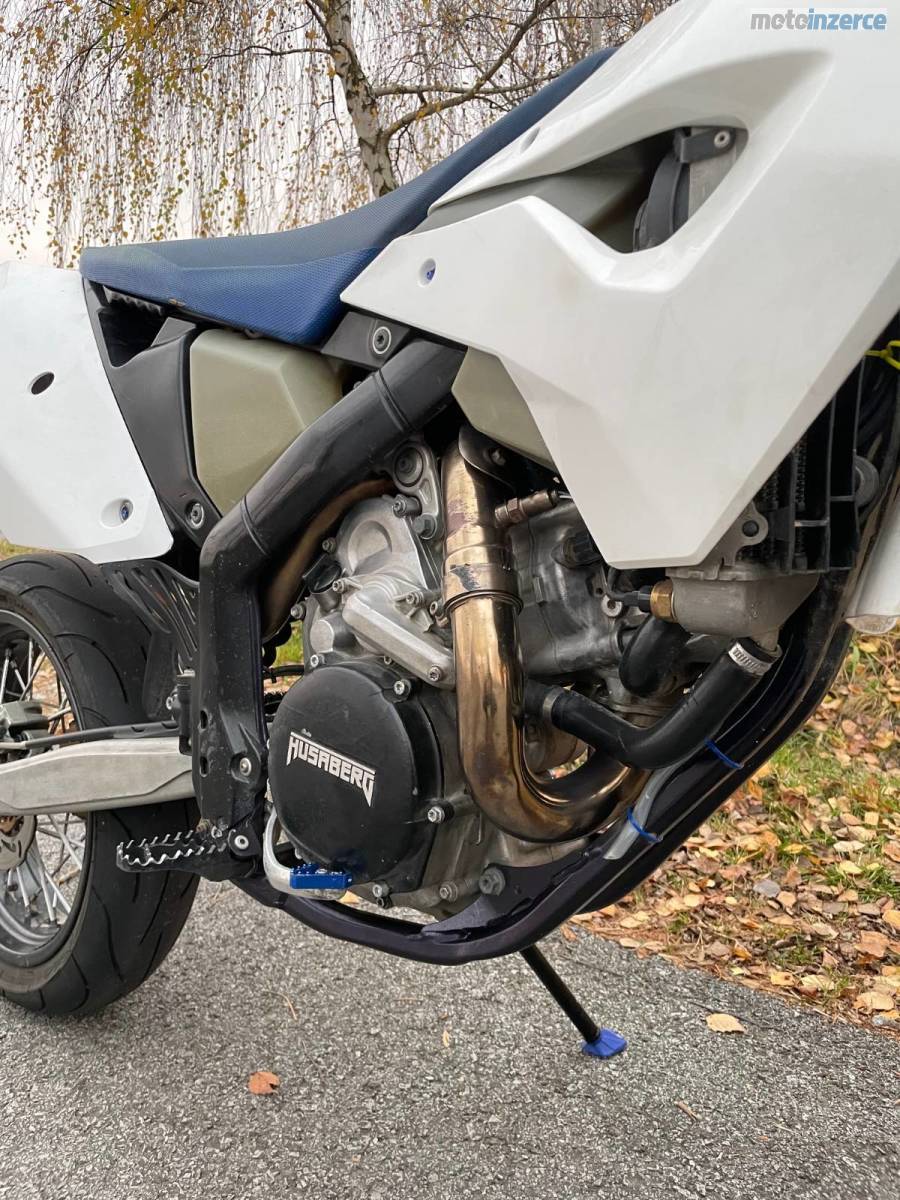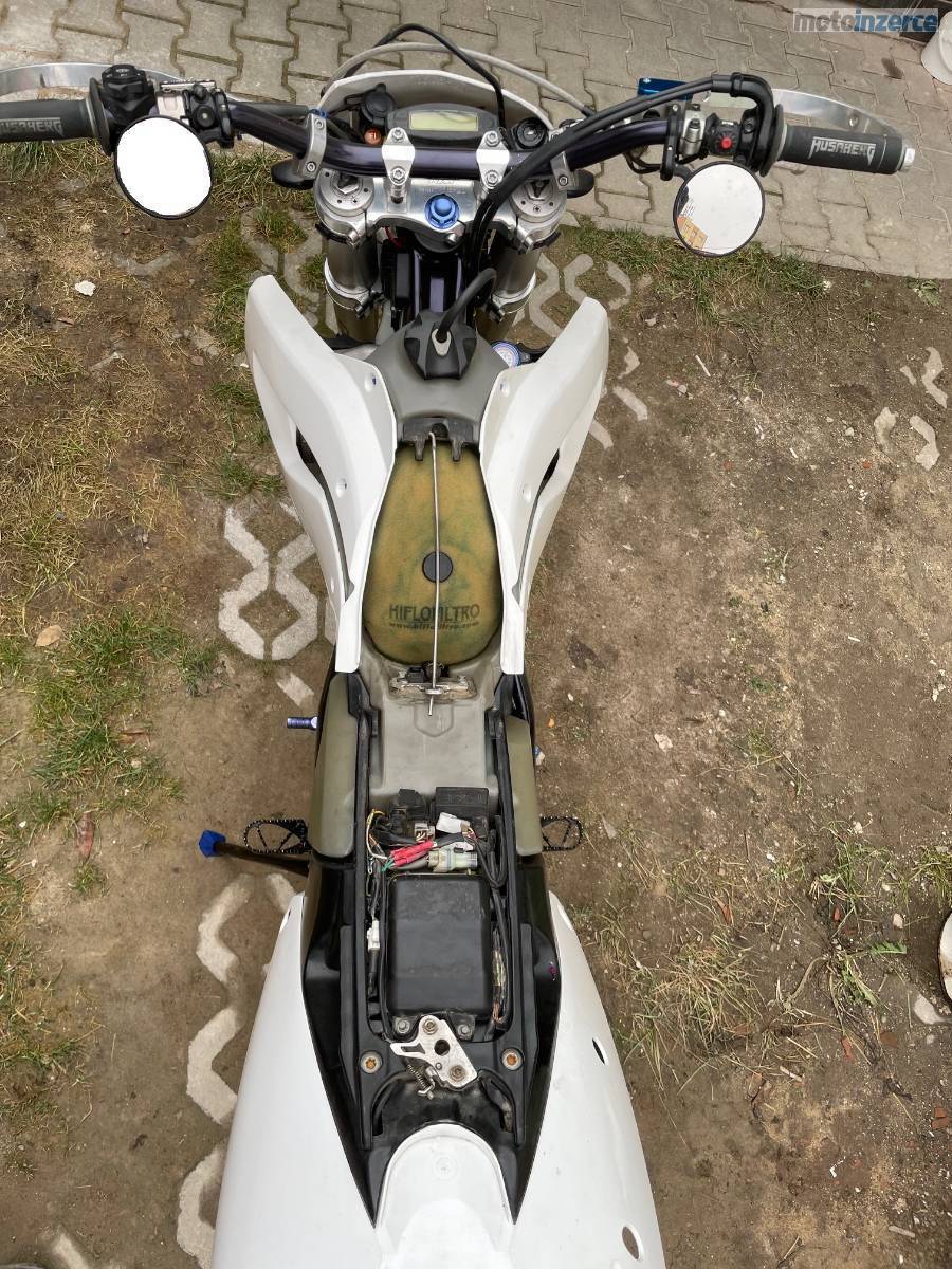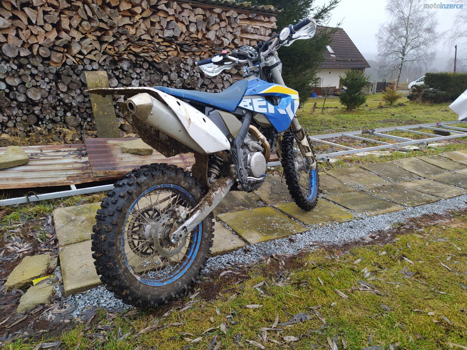 Zdravím, prodám HSB FE570, mám ho od roku 2017, historii předemnou těžko soudit (při koupi neměl magnet v kotouči – budík nepočítal), mnou měněn olej max do 15 mth, při 230 mth dělaná vodní pumpa, 270 mth větší servis – rovnaná hlava, rozvoďák, kontrola vůlí, rám do tmavě fialové metalízy. Teď čerstvě měněno těsnění s distančním válečkem na výstupní hřídeli (letos sem s bergem byl v Albánii a byl to slušněj průtokovej ohřívač oleje). Také jsem teď prvně dal Valvoline místo Castrolu -> začala klouzat spojka, všechny ty roky předtím sem s ní problém nikdy neměl. Kupoval sem jako čisté FE, dosti zbídačené, takže tomu bohužel odpovídá i stav když člověk začně obcházet motorku vice z blízka, předchozí majitelé neměli asi momenťák ani cit ruky, takže je bohužel ztrhaných pár závitů jako je šroub na víku olej. filtru, nebo některé z držáků krytů vidlic. Kompletně utrhaná byla i vývodka z nádrže, takže ta je sešroubovaná s ocelovým rámečkem a podlepená těsněním na nádrže (udělané hned po koupi) stejně tak jako nová palivová pumpa – za všechny roky sem neměl s palivem nebo jeho netěsností problém. Podvozkově kompletně FE, jediná změna je hustější olej ve vidlicích. Motárdová kola jsou 17ky, nejsou zapsána v TP, přední kotouč 320 s adapterem pro původní brzdu, na držáku rozety je prasklina, která se od roku 17 nepohla (předpokládám, že z lisování ložiska), Endurová kola mají horší ložiska a gumy jsou téměř nové. K bílým plastům (párkrát jeté) přidám i staré a hodně bídácké “tašky” s tankpadem a kupu náhradních dílů. Prodávám kvůli dalším prostředkům výhledově na bydlení, takže nepotřebuji nutně prodat. Cena pevná a v případě nezájmu budu řešit na jaře olej a dále používat jako víkendovku.