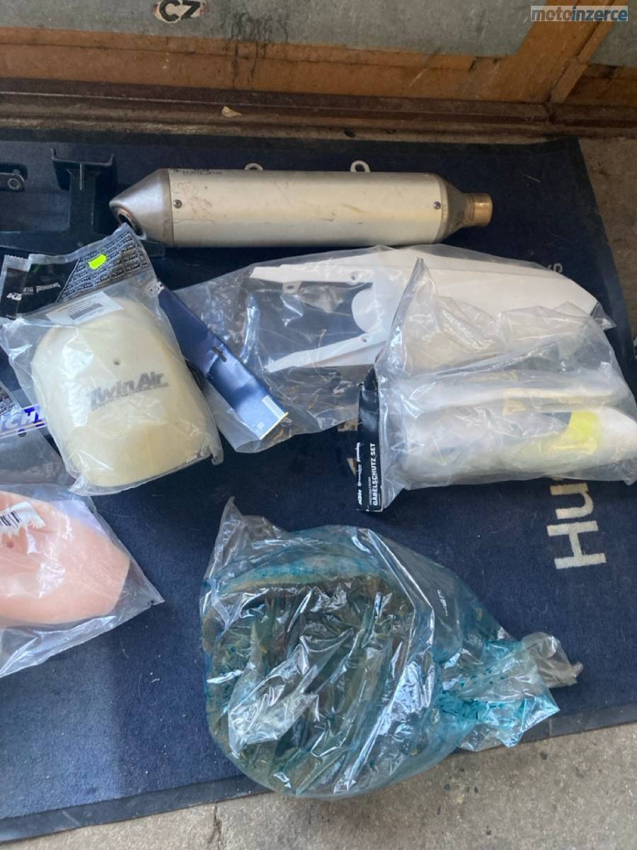 Prodám FE450, rok 2016, najeto necelých 200 Mth. Byla přestavěná na dálkové rally, jel jsem na ní 2. Naposledy jela 2019 Maroko. Pak stála, jednou do roka jsem ji vytáhl. Přední vidle rapasované v únoru 2026 u O. Kotrby, najeto 0. Celou dobu tam byla zadní pružina TRAX, je vyndaná, vidět na fotce, taktéž repasovaná u O. Kotrby. Akrapovič na motorce, originál výfuk k tomu + věci na fotce.