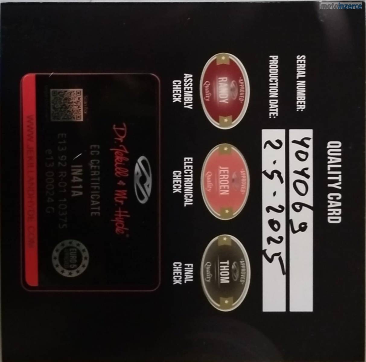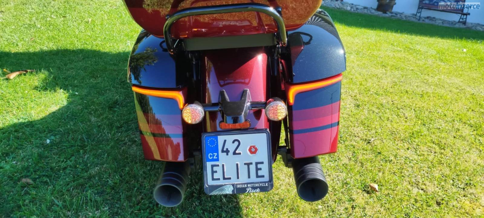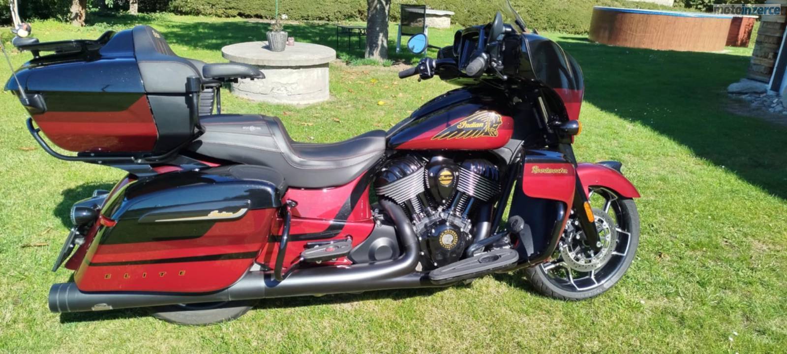 Roadmaster Elite, limitka 42/350 vyrobených ks, exkluzivní lakování Red Candy over Black Candy a zlatá, vyhřívané hefty, nezávyslé vyhřívaná a odvětrávaná gelová sedačka i pro spolujezdce, velké el. výsuvné plexi, hudba 4x600W, devítipásmovej ekvalizér, otvírací větrání revmaplechů, světlo v zadním kufru, 2x zásuvka, Appl Car, Bluetooth, hlídání tlaku v pneu, tempomat, dotykový 7' infotainment, USB/IPOD, podsvícené ovádání na řídítkách, komplet Led osvětlení, poslední vzduchem chlazený motor Thunder Stroke 116 c. i., manuální deaktivace zadního válce, tři jízdní režimy, vzduchokapalinovézadní odpružení atd. Doplňkové homologované výfuky Jekyll a Hyde s certifikátem, svítící hlava na předním blatníku, zadní padací rám, červeně prošívané područky, integrovaná světla na kufrech 3v1, stále v tovární záruce v maximálním vybavení, značka na přání.