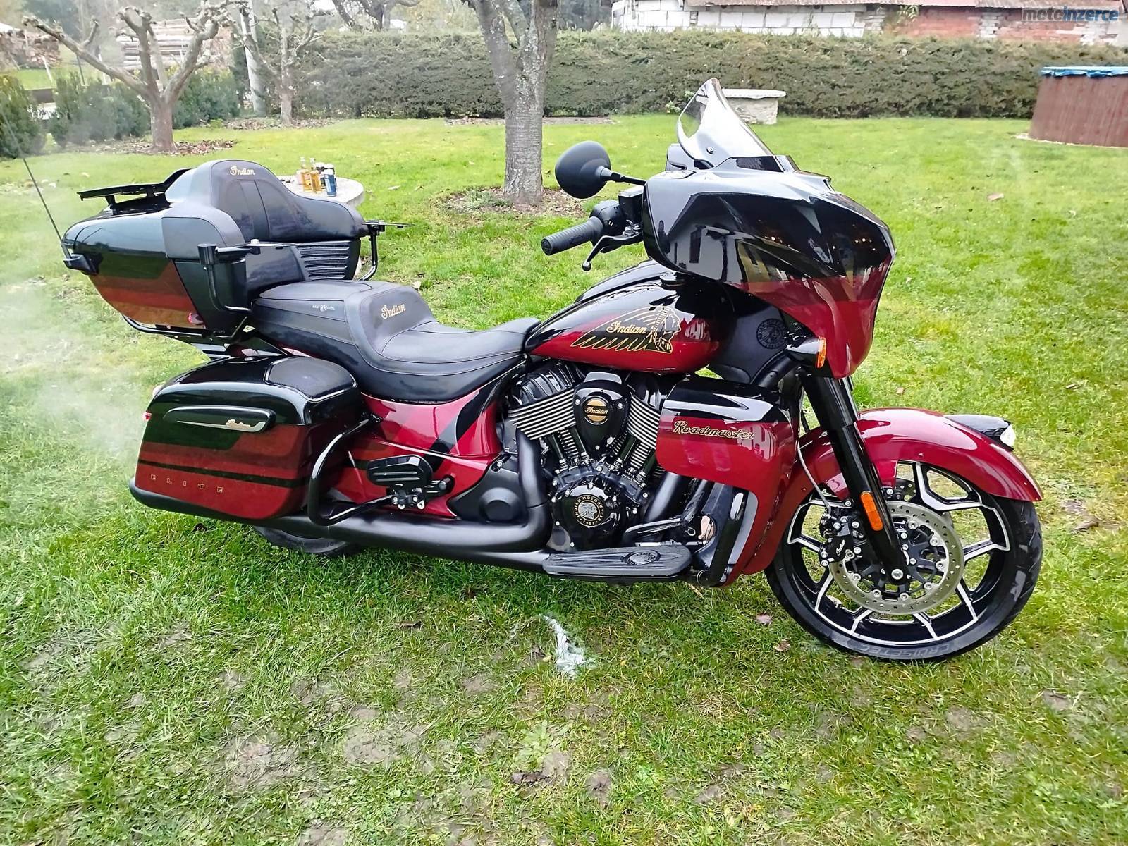 Roadmaster Elite, limitka 42/350 vyrobených ks, exkluzivní lakování Red Candy over Black Candy a zlatá, vyhřívané hefty, nezávislé vyhřívaná a odvětrávaná gelová sedačka i pro spolujezdce, velké el. výsuvné plexi, hudba 4x600W, devítipásmovej ekvalizér, otvírací větrání revmaplechů, světlo v zadním kufru, 2x 12V zásuvka, Appl Car, Bluetooth, hlídání tlaku v pneu, dotykový 7' infotainment Ride Command, USB/IPOD, kompaktibilní s chytrými telefony, podsvícené ovádání na řídítkách, komplet Led osvětlení, motor Thunder Stroke 116 c. i., manuální deaktivace zadního válce, tři jízdní režimy, 171Nm, 68 kW, vzduchokapalinové zadní odpružení, aktuální údaje o jízdě a zařazené rychlosti, ABS, tempomat, bezklíčové zapalování, dálkově zamykatelné kufry, 137l úložného prostoru atd. Doplňkové homologované výfuky Jekyll a Hyde s certifikátem, svítící hlava na předním blatníku, zadní padací rám, červeně prošívané područky, integrovaná světla na kufrech 3v1, stále v tovární záruce v maximálním vybavení, značka na přání, příští výměna oleje v 16000 km, najeto 11932 km, STK 6/2030. Servisní kniha, servisováno v autorizovaném servisu.