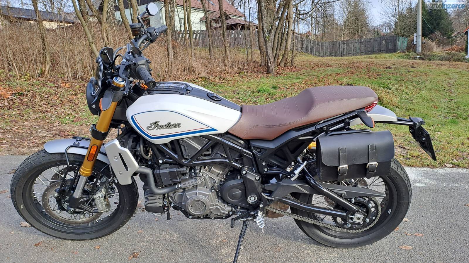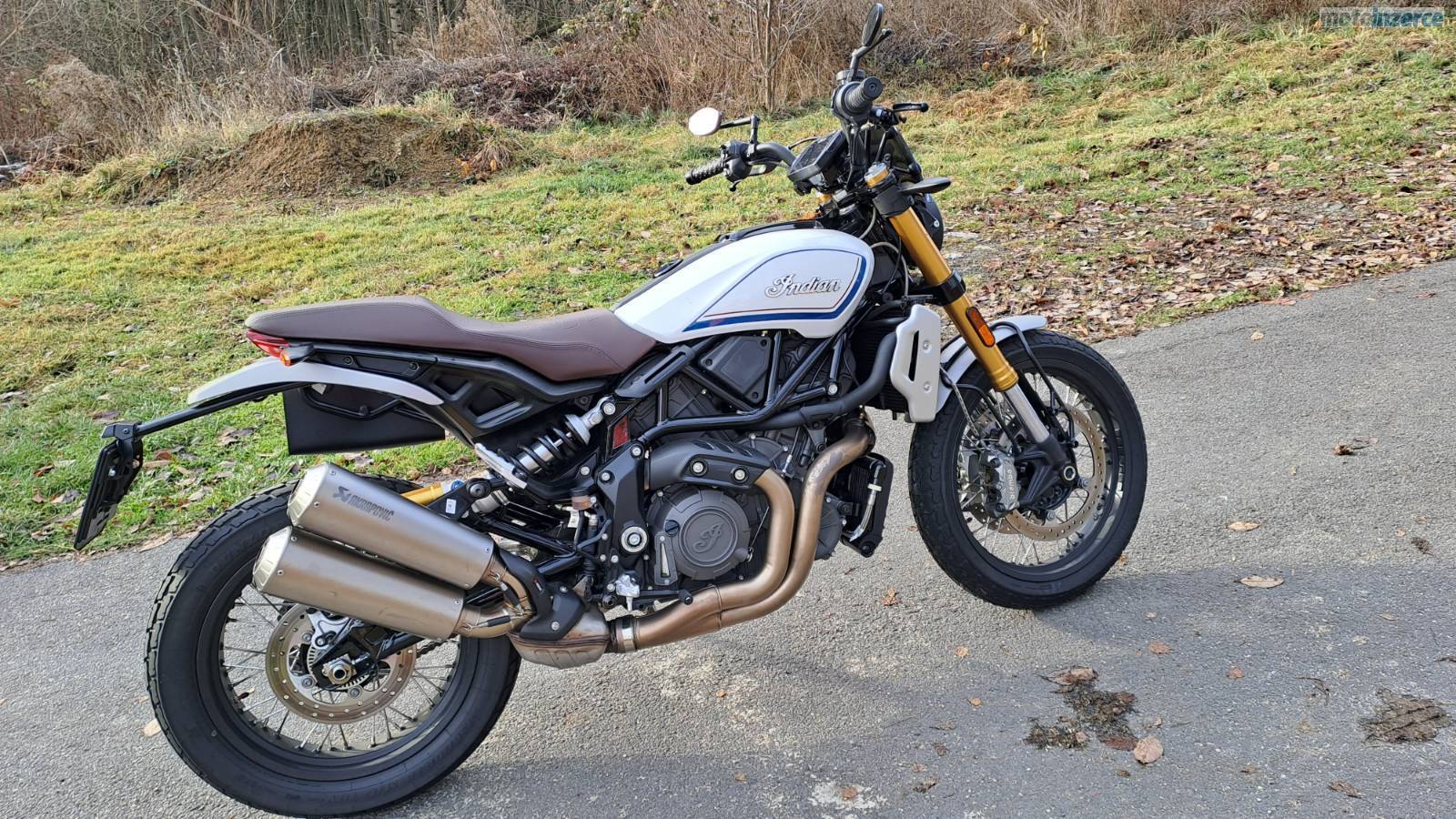 INDIAN FTR 1200 S RACE REPLICA – bílá, výfuk Akrapovič, zvýšená řídítka, lepší originální sedačka, nosič brašny SW Motech, ručně šitá kožená boční brašna (hovězina), blatníčky, AL spojlery. Po 820 km vyměněn olej (plná syntetika) a olejový filtr. Původ ČR, model 2020 – provoz 2021, zdvihový objem 1 203cm3, výkon 93 kW, provozní hmotnost 245 kg. Zajetý motocykl – 1 435 km, bez škrábance. Pevná cena, volejte prosím v případě Vašeho vážného zájmu.