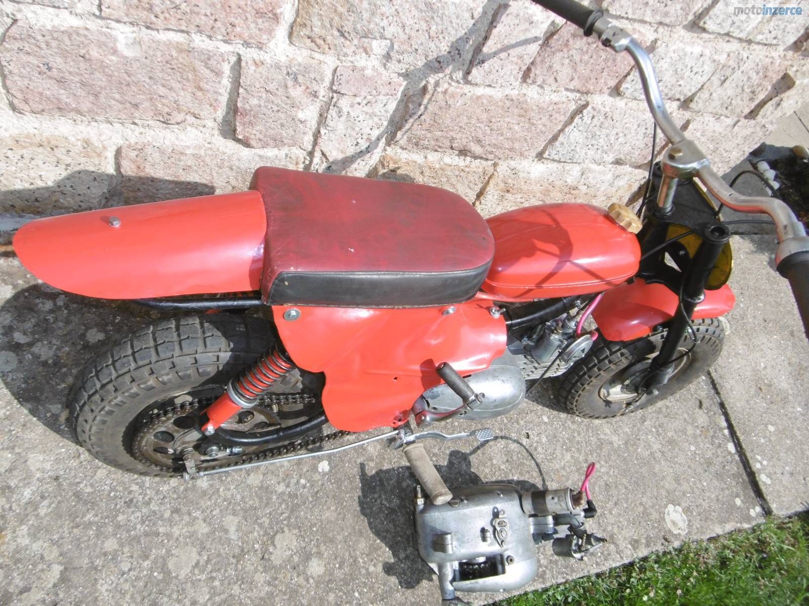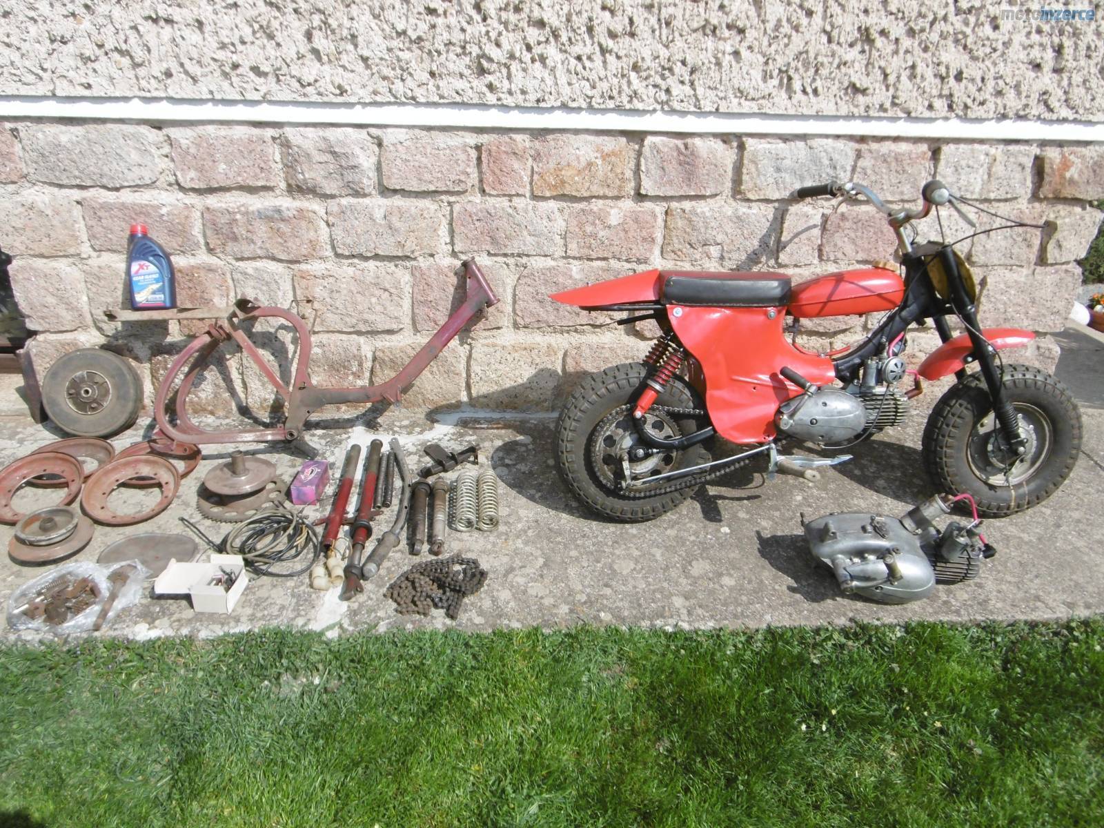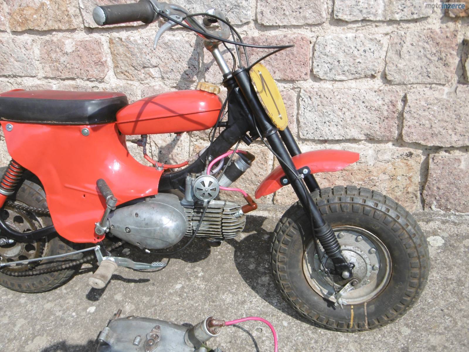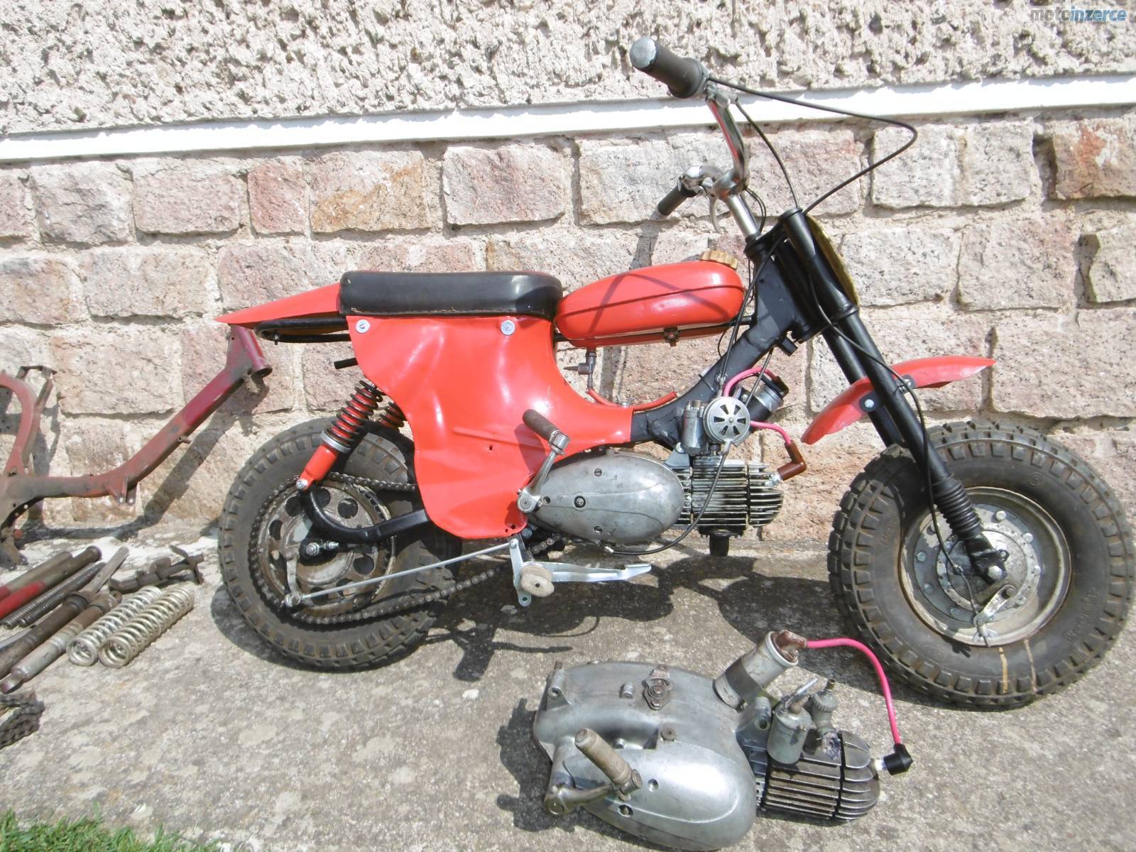 Dobrý den, prodám mini motocykl Jawa 50 Pařez. V mládí mi ho postavil táta a nedávno jsem ho připravil pro vnuka, ale nechce ho, raději prý tablet. Celkově jsem ho rozebral + nové lakování, kontrola předních a zadních tlumičů. Motor rozebrán a zkontrolován + nové kroužky, těsnění pod válcem hlavou, nová gufera na klice, osazena zánovní 2 lamelová spojka z Pionýra. Převodovka propláchnuta + dán nový olej, nová svíčka, nová kabeláž. Seřízené zapalování + vyčištěn a seřízen karburátor. Nová lanka, obě brzdy fungují výborně, pneu drží tlak, startuje pěkně, převodovka řadí v pohodě. Přidám díly a motor na stavbu dalšího mini, nebo jako náhradní díly. Velmi pěkné řemeslnické zpracování. Mám 85 kg a uveze mě v pohodě. Někdo si ho ještě určitě užije. Cena za vše 12 500 kč. Kutná Hora 777 589258