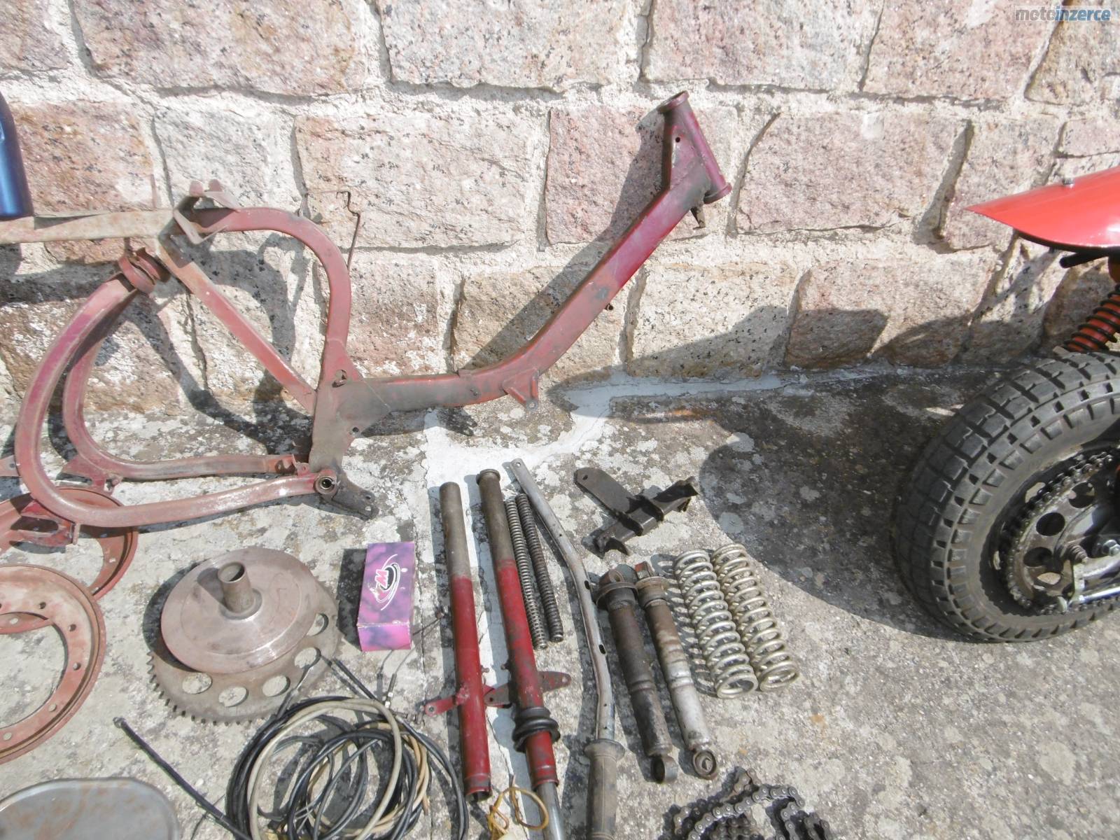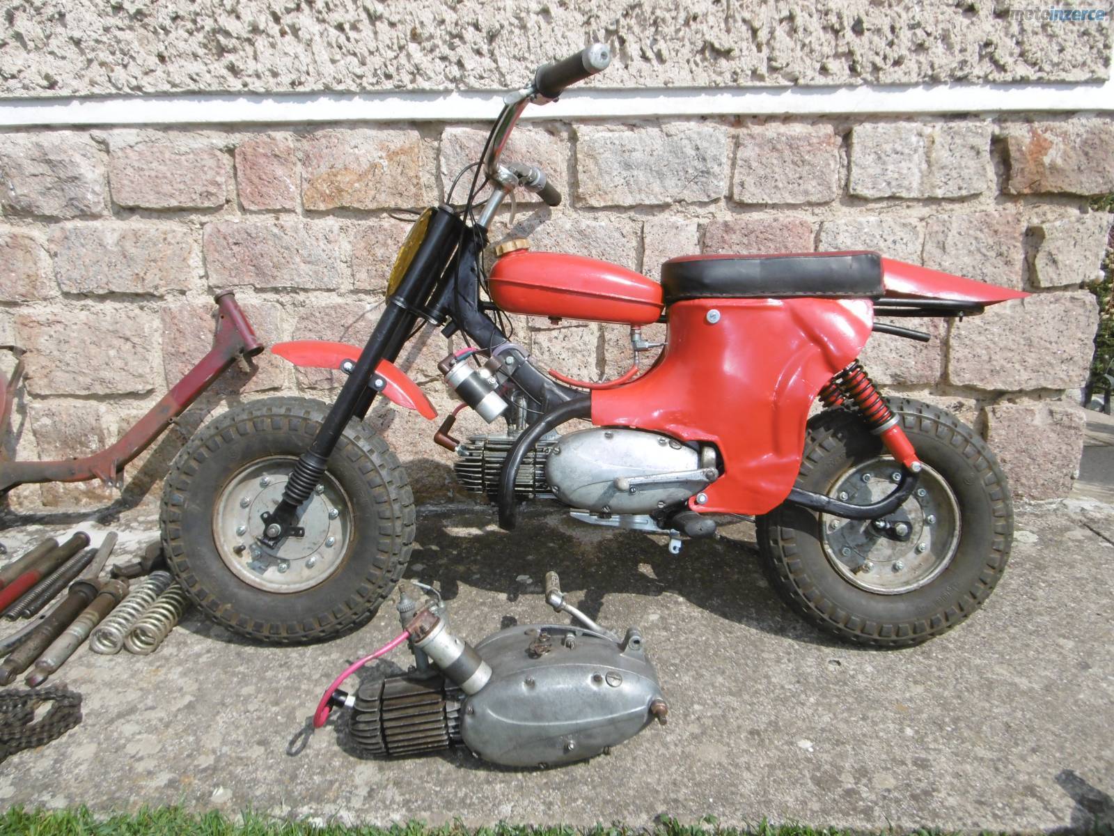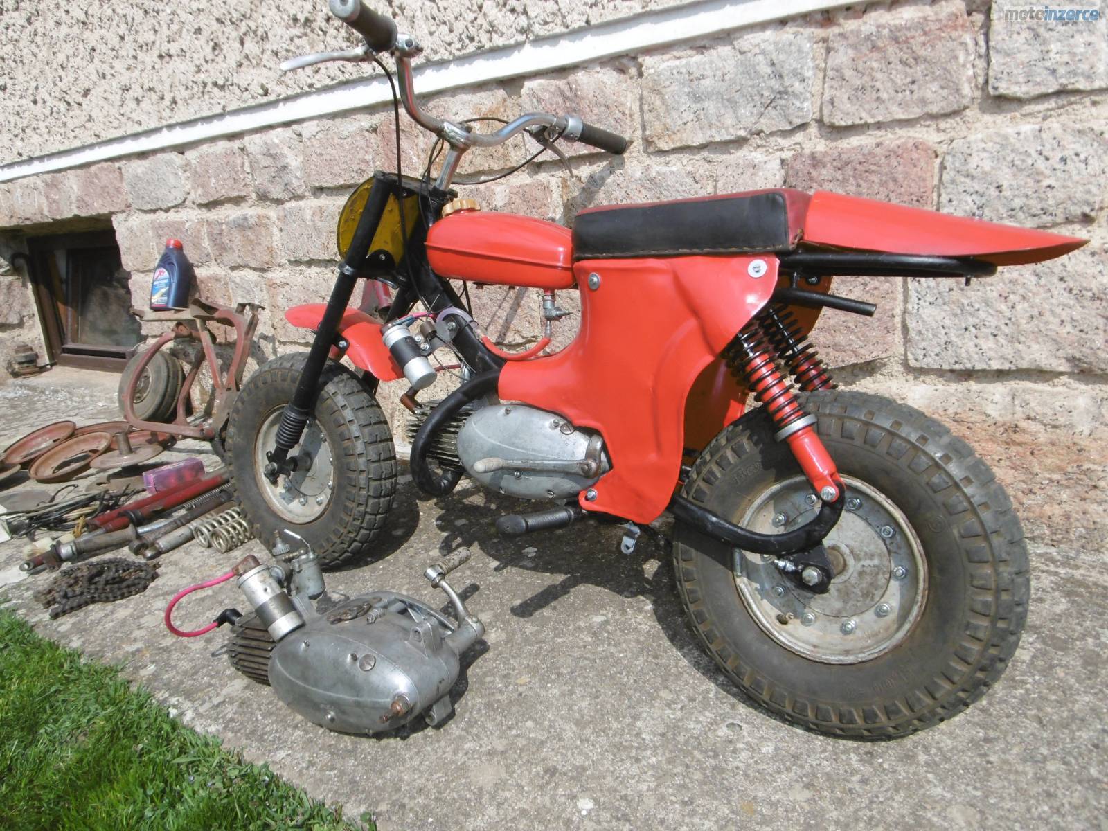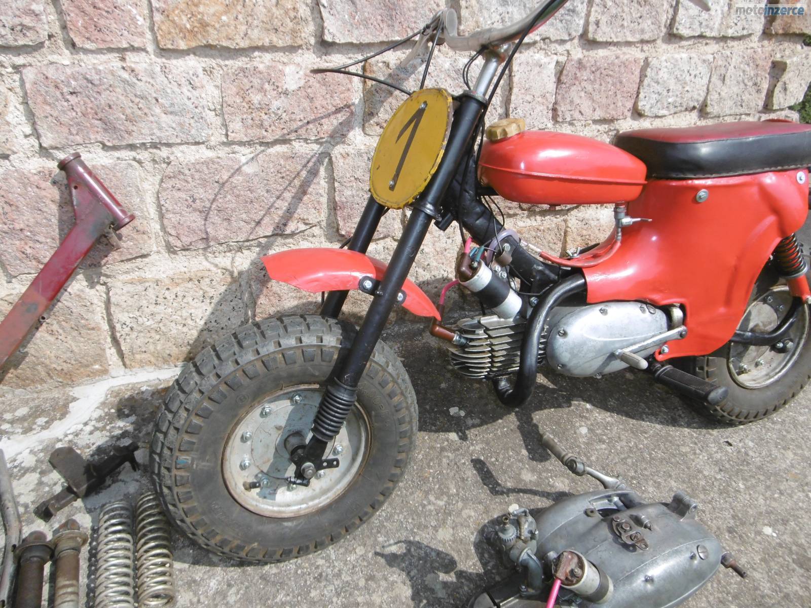 Dobrý den, prodám mini motocykl Jawa 50 Pařez. V mládí mi ho postavil táta a nedávno jsem ho připravil pro vnuka, ale nechce ho, raději prý tablet. Celkově jsem ho rozebral + nové lakování, kontrola předních a zadních tlumičů. Motor rozebrán a zkontrolován + nové kroužky, těsnění pod válcem hlavou, nová gufera na klice, osazena zánovní 2 lamelová spojka z Pionýra. Převodovka propláchnuta + dán nový olej, nová svíčka, nová kabeláž. Seřízené zapalování + vyčištěn a seřízen karburátor. Nová lanka, obě brzdy fungují výborně, pneu drží tlak, startuje pěkně, převodovka řadí v pohodě. Přidám díly a motor na stavbu dalšího mini, nebo jako náhradní díly. Velmi pěkné řemeslnické zpracování. Mám 85 kg a uveze mě v pohodě. Někdo si ho ještě určitě užije. Cena za vše 12 500 kč. Kutná Hora 777 589258