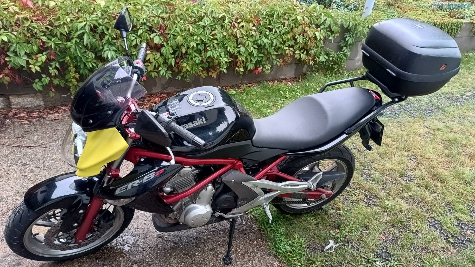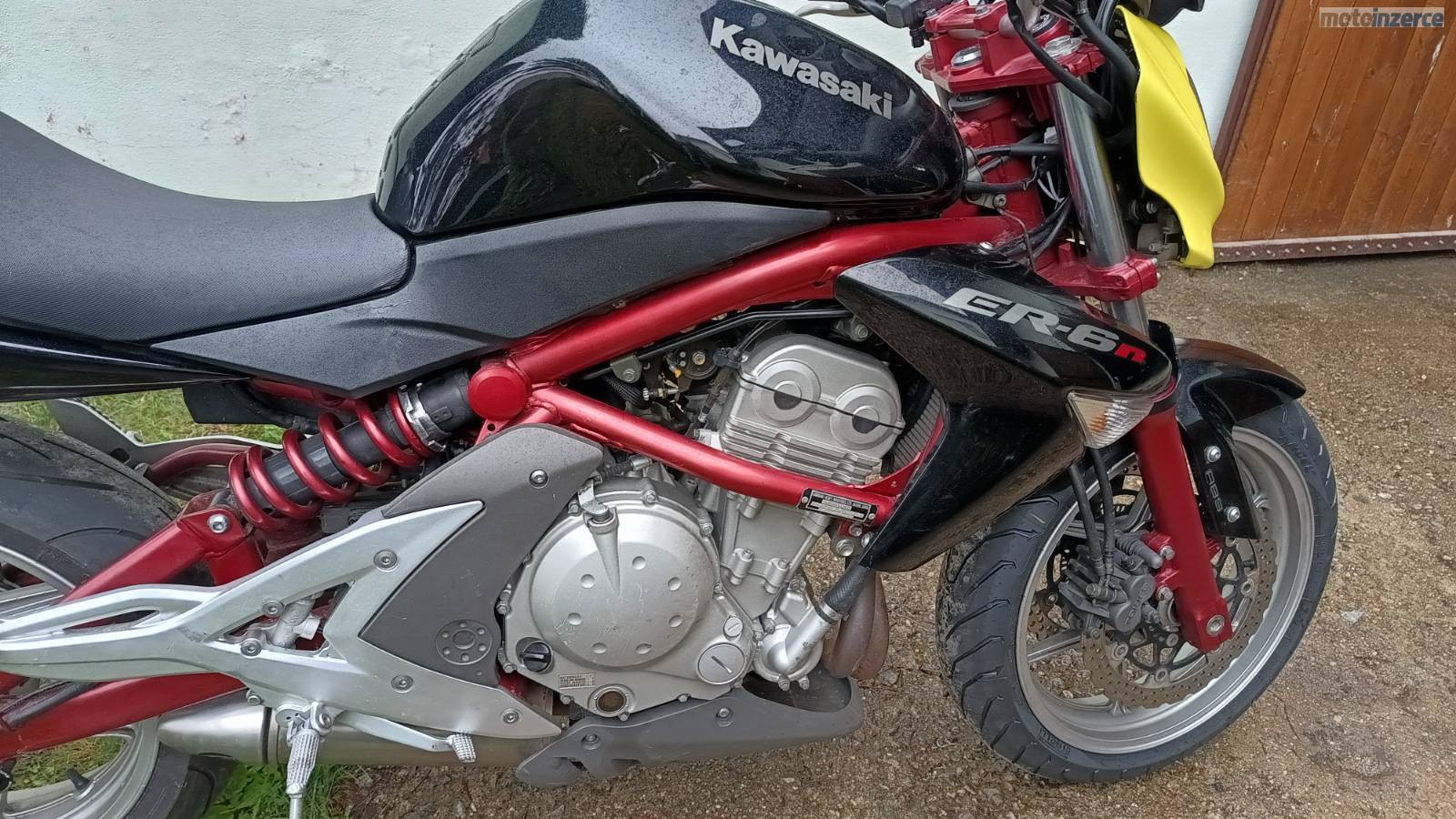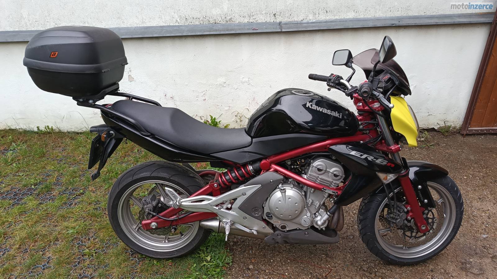 Prodám Kawasaki ER-6n s ABS, 53 kW, rok výroby 2007, najeto 42 000 km, ukazatel zařazené rychlosti, zadní kufr, nová přední pneu, přetěsněny přední vidlice, přední plexi, ukazatel napeti + nabíječka USB + USB C, 2x klic STK 6/29.