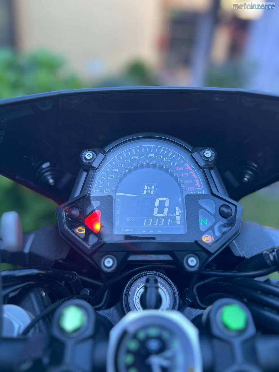 Motorka v bezvadném stavu, kupovaná nová, pravidelně servisovaná, doplňky USB nabíječka, Akrapovič výfuk originál s certifikátem, brašny SW-motech, vyšší plexi, padáky, snížená o 3cm jde opět vrátit zpět. Původní výfuk, plexi a sada zvýšení součástí. Gumy nové, najeto 1500 km. Olej, filtry a brzdovka děláno před 1500 km. Lehká a krásně ovladatelná. ABS. Vhodná pro začátečníky, ale i pokročilé. Důvod prodeje přechod na silnější moto.