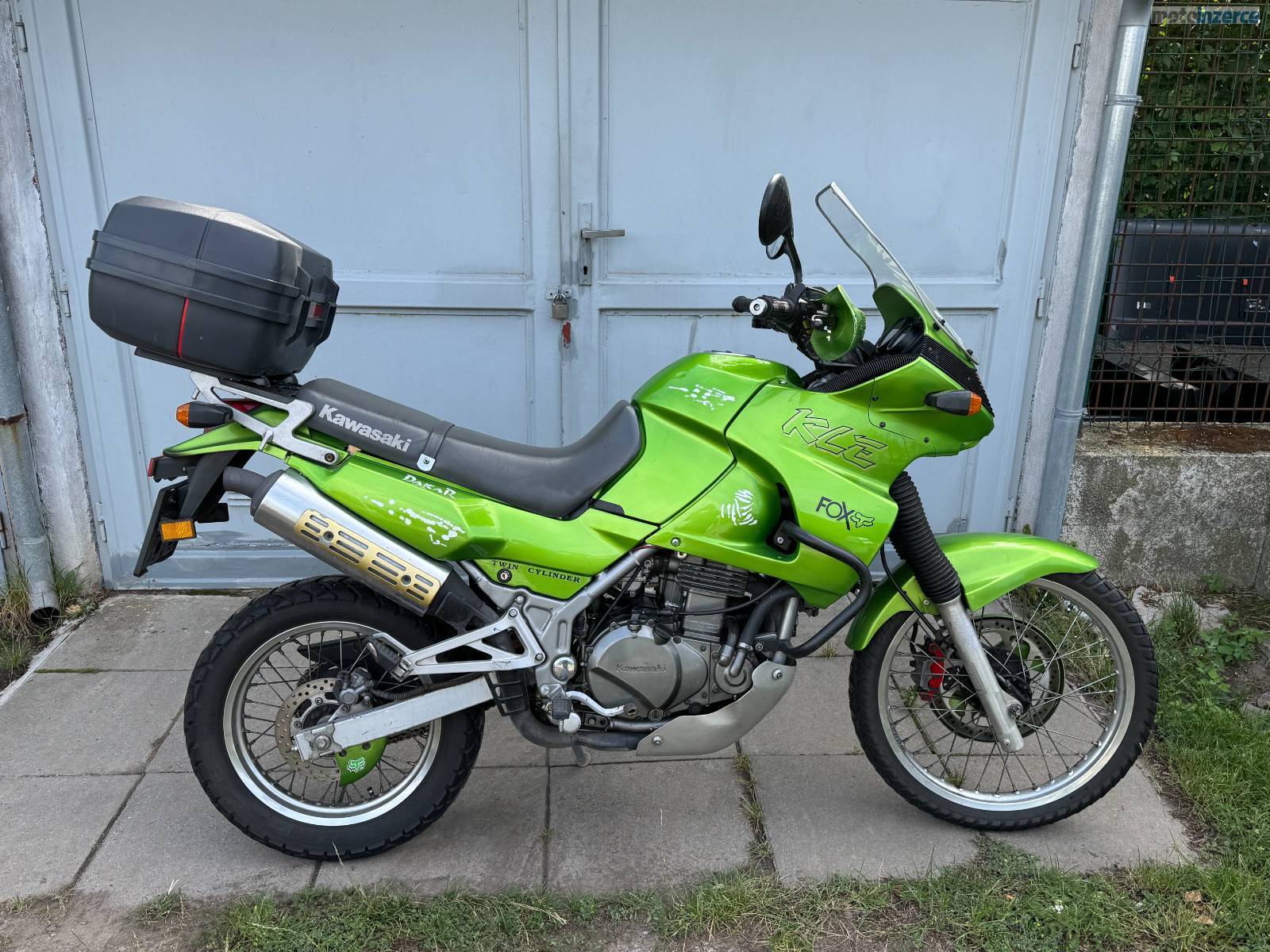 Prodám motocykl Kawasaki KLE 500, RV 1992. Najeto 52 500 km, výkon 37 kW. STK a EK do 10/2029. Bezproblémový stroj. Nový přední kotouč a desky, baterie, pružina zadního tlumiče, před třemi lety repas přední vidlice, nové zapalování, pneu a řetězová sada. Příslušenství: Centrální stojan, padací rámy, horní kufr + rám s boční kufry a nějaké ND.