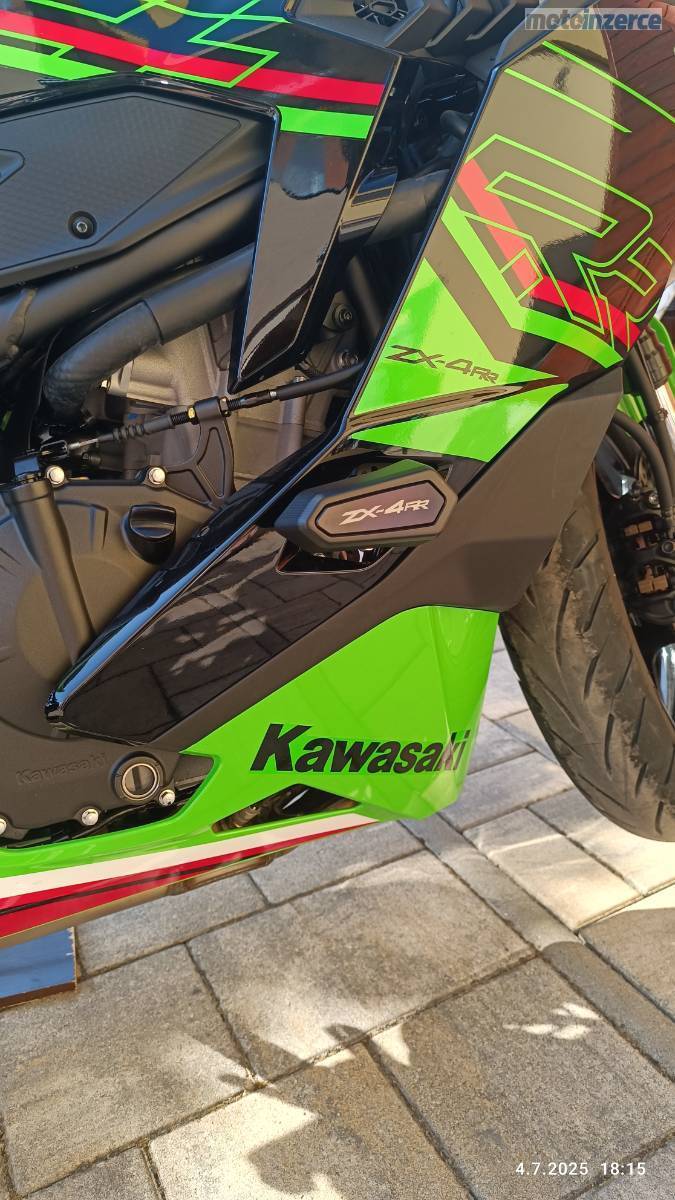 Prodám svou Kawasaki ZX-4RR v naprosto perfektním stavu – najeto pouze 1 800 km, nepadená, garážovaná, po první výměně oleje, připravena na sezónu.