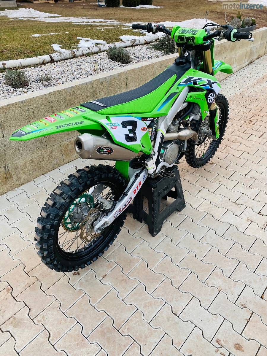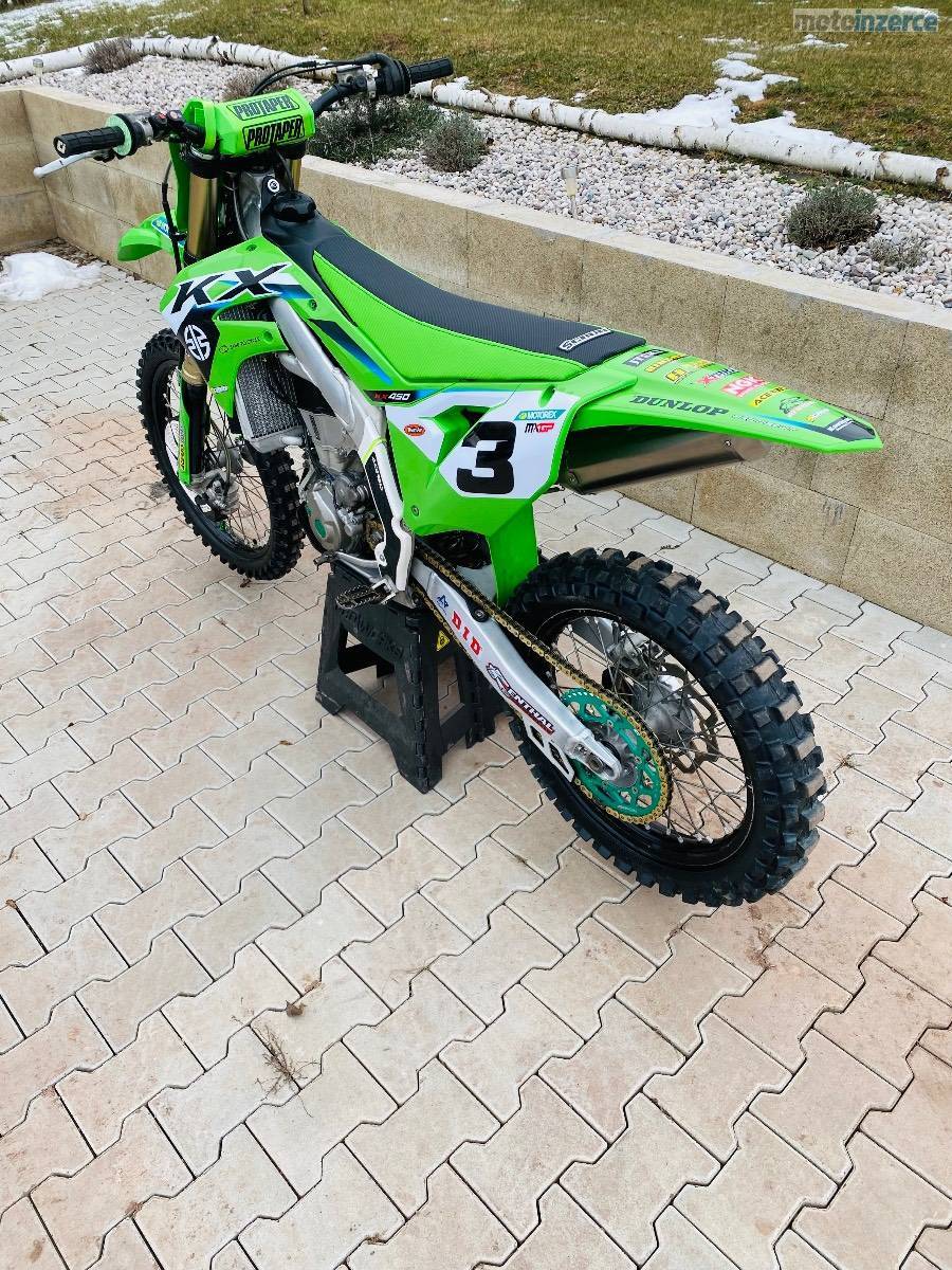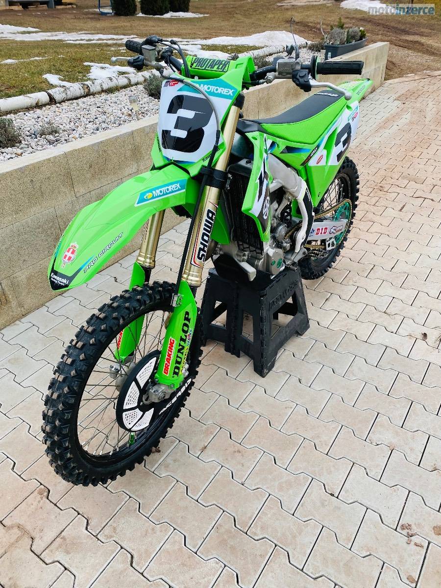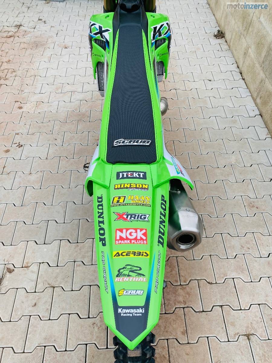 Nabízím nádhernou KXF 450, Romain Febvre Replica 2025, r.v. 2020 lze ověřit podle VIN, najeto 120mth, MY 19 23 tzn. el. startér, launch control, tři palivové mapy atd. Pouze dva majitelé (veteráni), nyní po pečlivém servisu připravená na sezónu, vidlice 0mth, centrál 20mth, píst 20mth, ventily 0mth, zánovní pneu, nový potah sedla scrub, komplet nový outfit Polisport včetně kvalitních polepů od scrubdesignz, kompletní výfukový systém GPR (twenty), řetězovka, vodítko, teploměr FX, olej, kapaliny, ložiska krk, uložení tlumiče atd. Zkrátka jediná vaše starost bude koupit benzin a jezdit a ne pod tím hned ležet jak u většiny ojetých mx motocyklů.