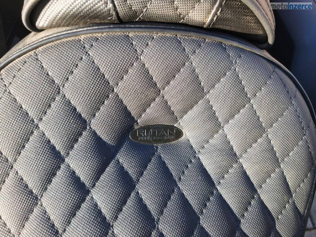Na nádrži je vidět jediné poškození, drobná promáčklina na nádrži způsobená druhou motorkou opřely se o sebe.