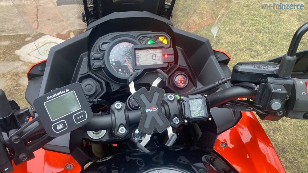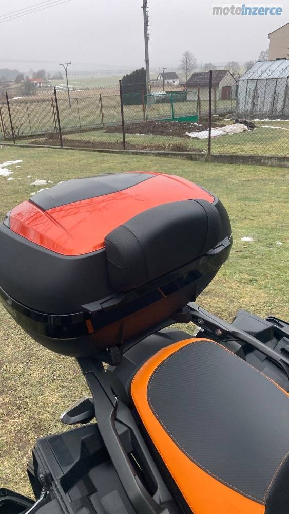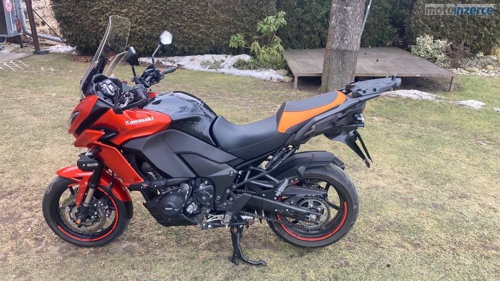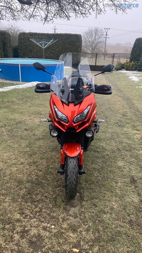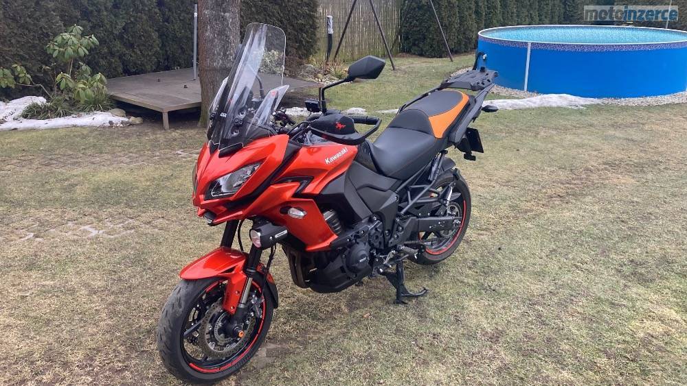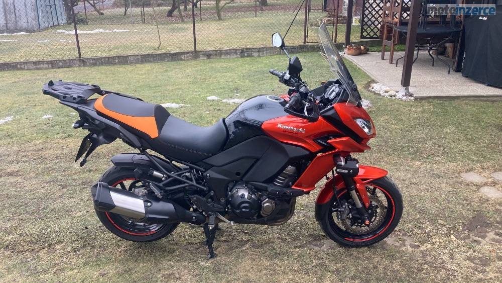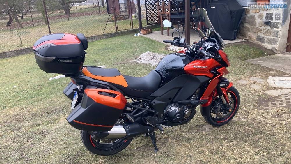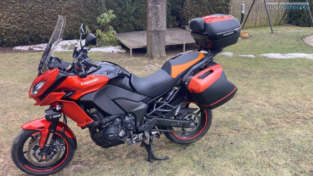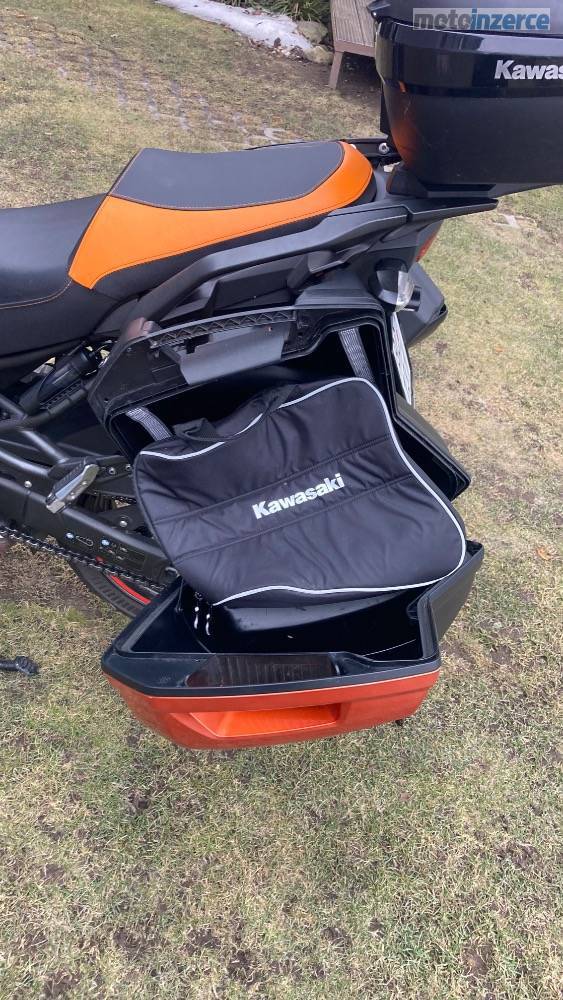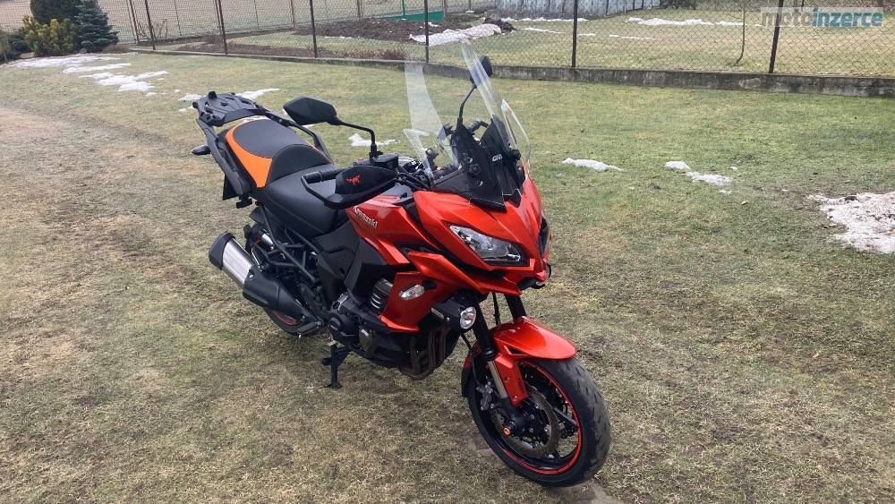 Kawasaki Versys 1000 v barvě orange, výbava grand tourer, r.v. 2015,34 000 km, dovoz z DE, STK do 08/2029, serviska, nebouraná, 2x klíč, drobné provozní oděrky. Originál výbava Kawasaki: ABS, KTRC, zásuvka 12VDC, ukazatel zařazené rychlosti, přídavná LED světla, padací protektory, tank pad na nádrži, hlavní stojan, 3x kufr, tašky do bočních kufrů, opěrka pro spolujezdce na horním kufru. Další příslušenství: kovový chránič chladiče, reflexní proužky na kolech, padací protektory v ose předního kola, prodloužení předního blatníku a zadního podblatníku, rozšíření pohotovostního stojanu, padací protektory na bokách motoru, rozměrnější čiré turistické plexi GIVI, automatické mazání řetězu scottoiler, kontrola tlaku v pneumatikách, držák na mobil. Nová brzdová a chladící kapalina. Pneu cca 50 60%, řetězová sada cca 60%. K motorce přidám nové přední brzdové destičky a 1 l oleje do zásobníku na mazání řetězu. Rozumná dohoda možná.