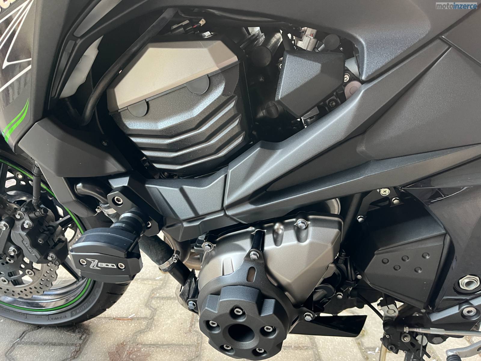 Výbava: laděný výfuk s homologací + db killer, plexi štítek, stavitelné páčky, padáky, originál kryty motoru Kawasaki, padák ochrana výfuku, hliníková zrcátka, držák topcase + topcase, ukazatel zařazené rychlosti, hliníkový kryt chladiče, zadní blatníček nad kolo, rolny do kyvné vidlice, padákové protektory do předního kola, rozšíření na stojánek.