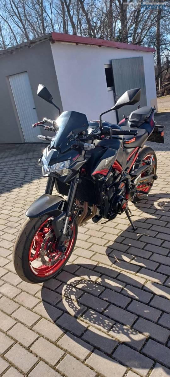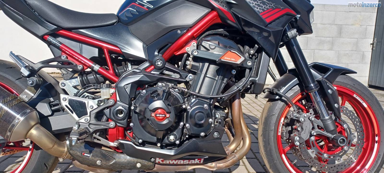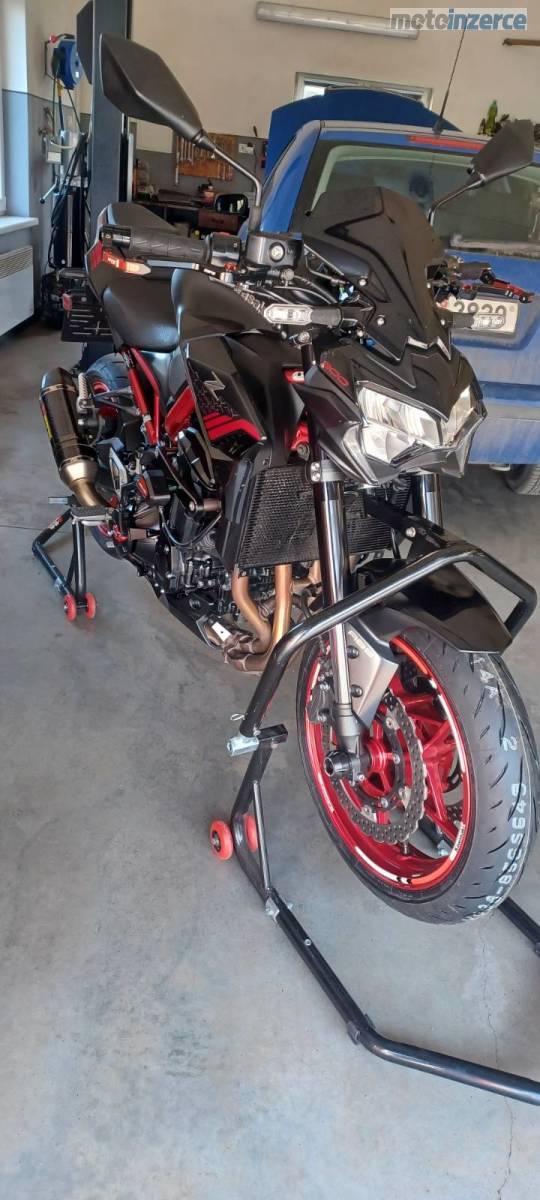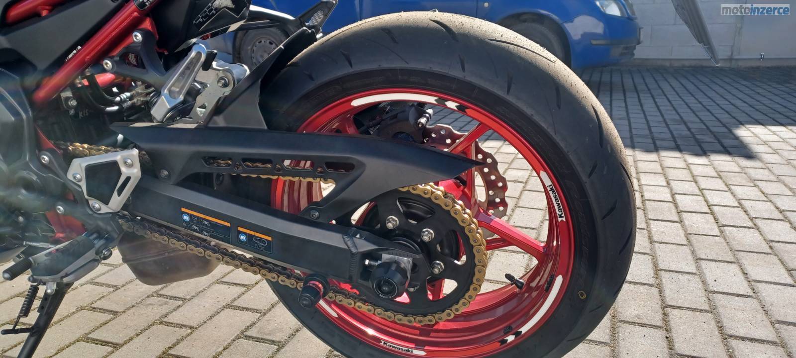 Stav 100%, nebouraná, pěkně vybavená-padáky na rámu a motoru, protektory přední i zadní osy, vyšší origo plexi, sportovní páčky, chrániče páček, polepy kol, 12v zásuvka vepředu pod plexi a vzadu pod sedlem USB zásuvka, výfuk akrapovič(+0,9kw), odblokovaný servis kawasaki (servis je možno si nastavovat a resetovat sám), nový olej a filtr, olejový servis dělaný po 6000 km místo daných 12000 km, svíčky a vzducháč po 12000 km, brzdovka měněna každý rok, pravidelně servisována u mě v servisu kromě první návštěvy autorizáku. Všechny orig. díly k dispozici (páčky, závaží řídítek, nižší plexi, orig, výfuk). Propojení s moto pomocí aplikace Rideology (na displeji se zobrazí příchozí hovor nebo SMS v aplikaci se zobrazují různé data o průběhu cesty atd., 4 jízdní režimy (sport, road, rain, rider). Serviska, návod k obsluze, oba klíče. Nová přední pneu, zadní 60%. Připravena na sezónu.