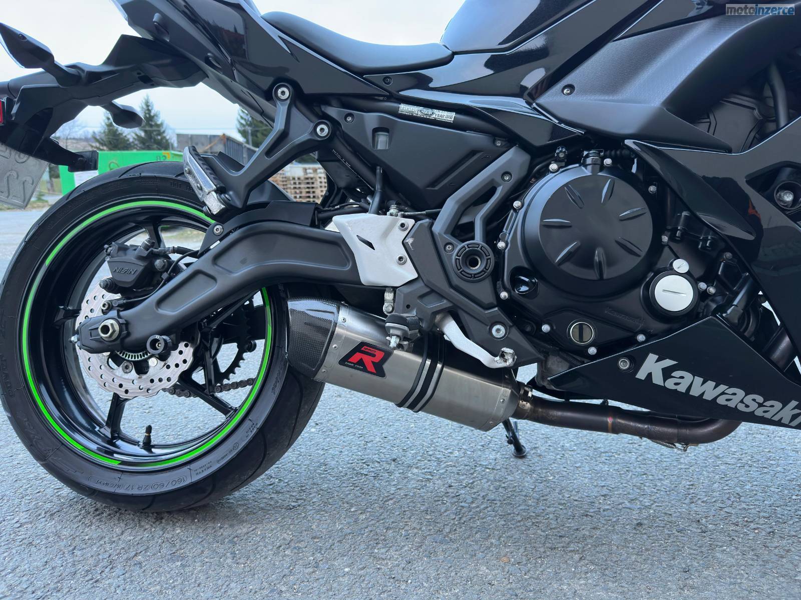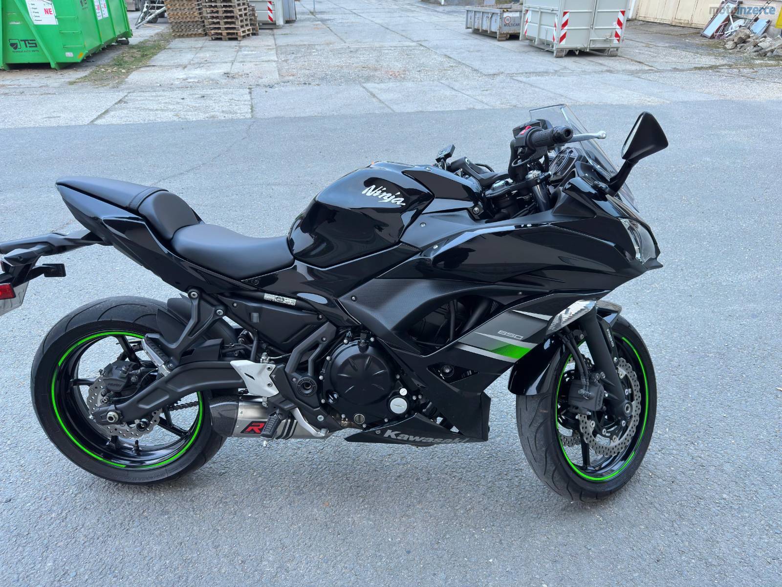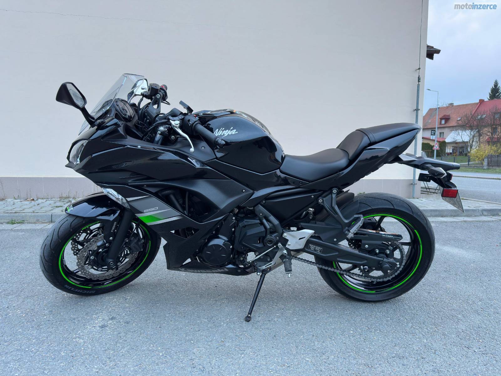 Dobrý den, prodám Kawasaki ninja 650 50 kW, rok výroby 12/2018. Jsem druhý majitel. Nájezd 23t km. Možnost stáhnout na (35kW) A2. Nová baterie, řetězovka 80%, pneumatiky (najeto cca 6t km): přední ok, zadní ještě tuto sezónu zvládne. Olej měněn každou sezónu, nějaká kosmetika se najde není to nová motorka. Na motorce nainstalované vyhřívané gripy OXFORD, laděný výfuk DOMINATOR (nádherný zvuk) originál mám též. Motorka dostala vždy co potřebovala. Na ceně se můžeme dohodnout.