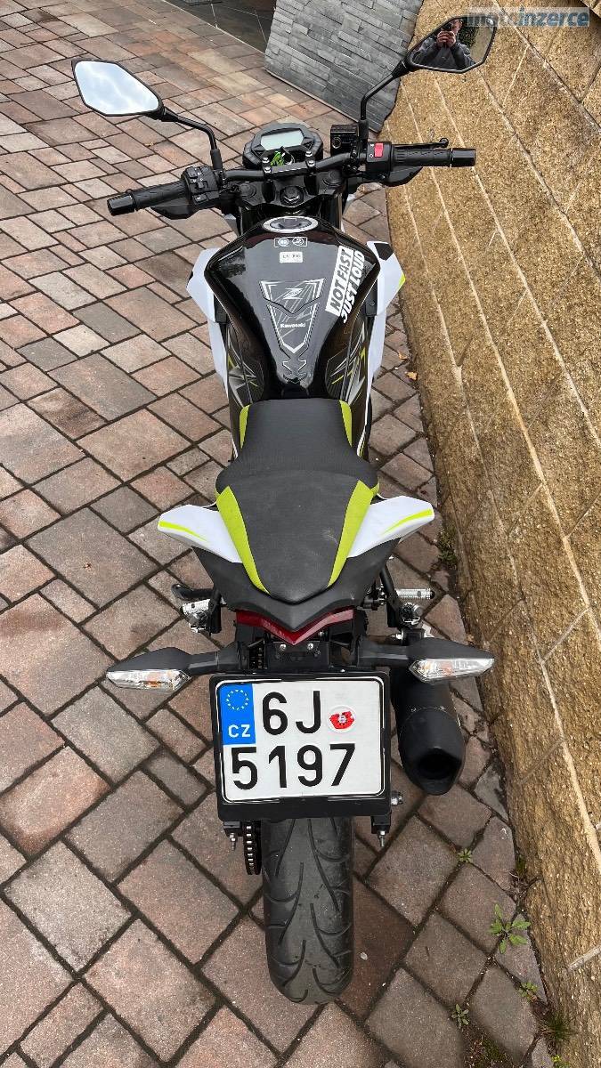 Dobrý den, prodám svoji Kawasaki z125. STK do 26/7. Laděný výfuk z Itálie G. P.R. Mám k tomu stále i originál. Najeto ma 21xxxkm. Motorka má pár drobný estetických vad, např. škrábance a lehce na povrchu promáčklou nádrž. Gumy jsou ještě tak na 2 sezóny. Lékárnička je v motorce. Jinak vše je v pořádku a na motorce se hned může jet. Mohu dovést.