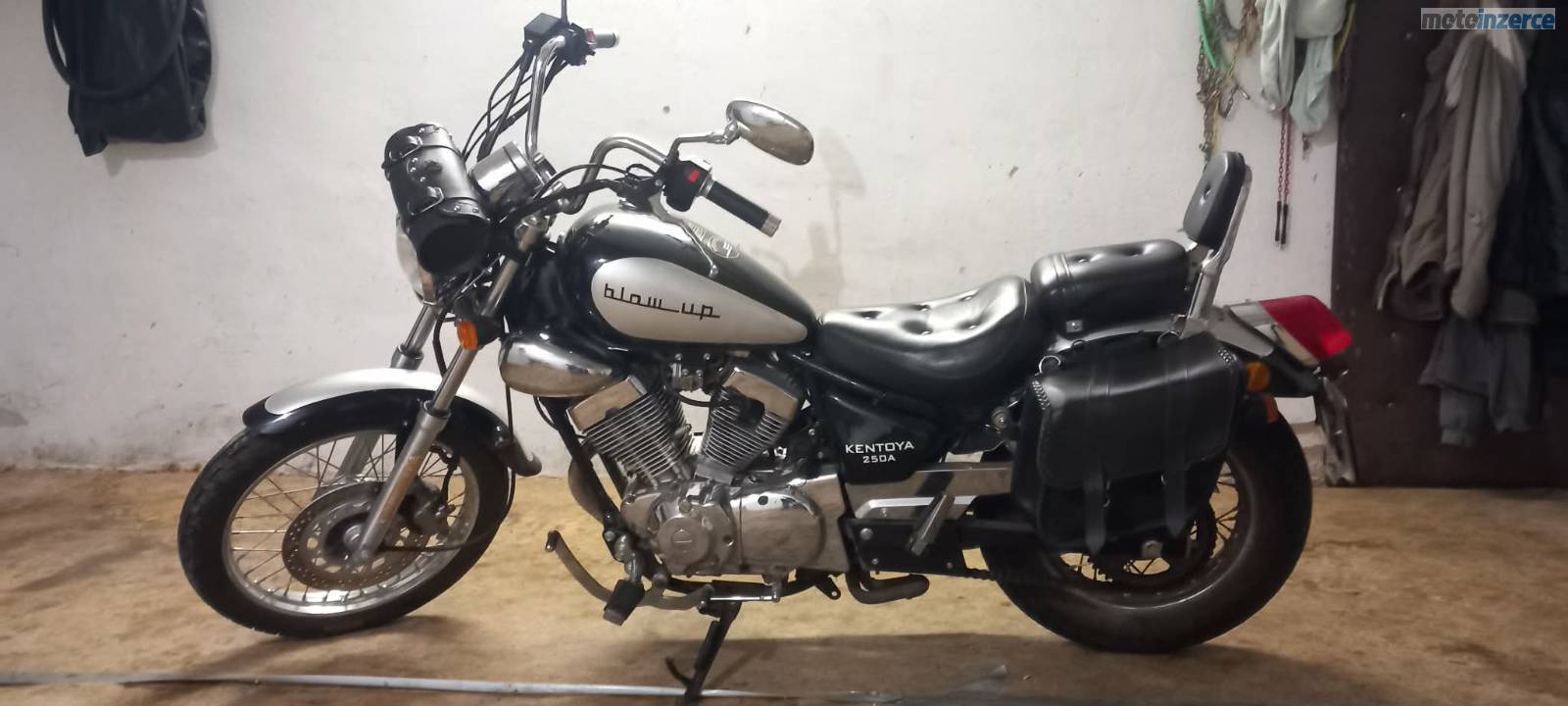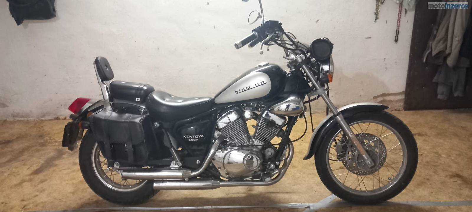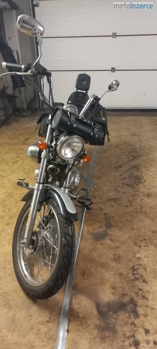 Motocykl typu chopper / cruiser s dvouválcovým motorem o objemu 250cm3 a výkonem 10 kW, řidičák od 16 ti let, vyrobený roku 2008. Spotřeba 4l na 100 km. Nájezd 2000 km. Jsem druhý majitel, motocykl dostal novou baterii, relé startování, má kožené doplňky. Je známý pro svůj klasický vzhled, dostatečnou velikost pro začátečníky a spolehlivost při nenáročném cestování.