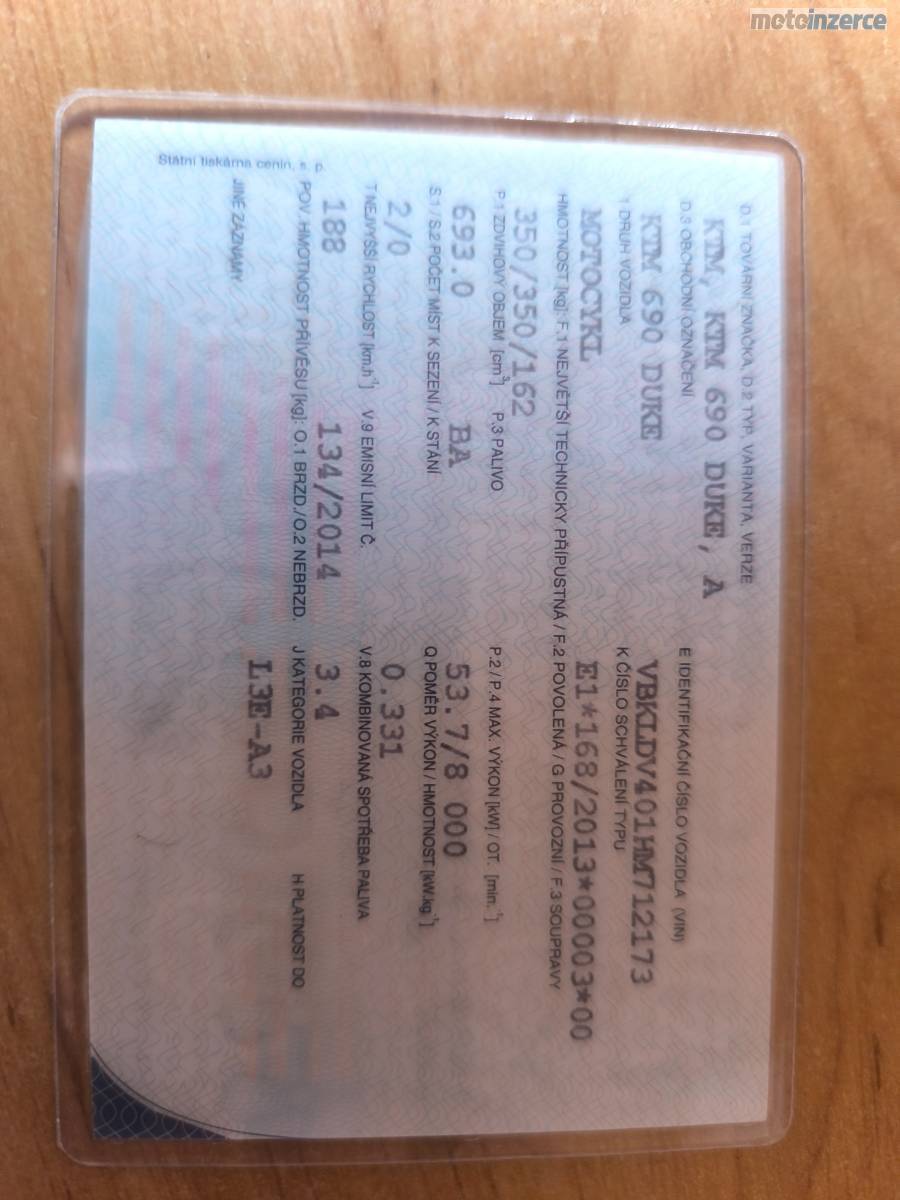 Prodám KTM DUKE 690, rok výroby 2018 koupená nová v ČR, najeto cca. 25.000 km (stále trochu jezdím), je to už ten model s novým motorem (od roku 2016) větší vrtání a menší zdvih a tím pádem o 1000 vyšší max. otáčky, v hlavě ještě jeden vyvažovák tím pádem menší vibrace. Prosím pouze volat nebo SMS na mail reaguji pozdě.