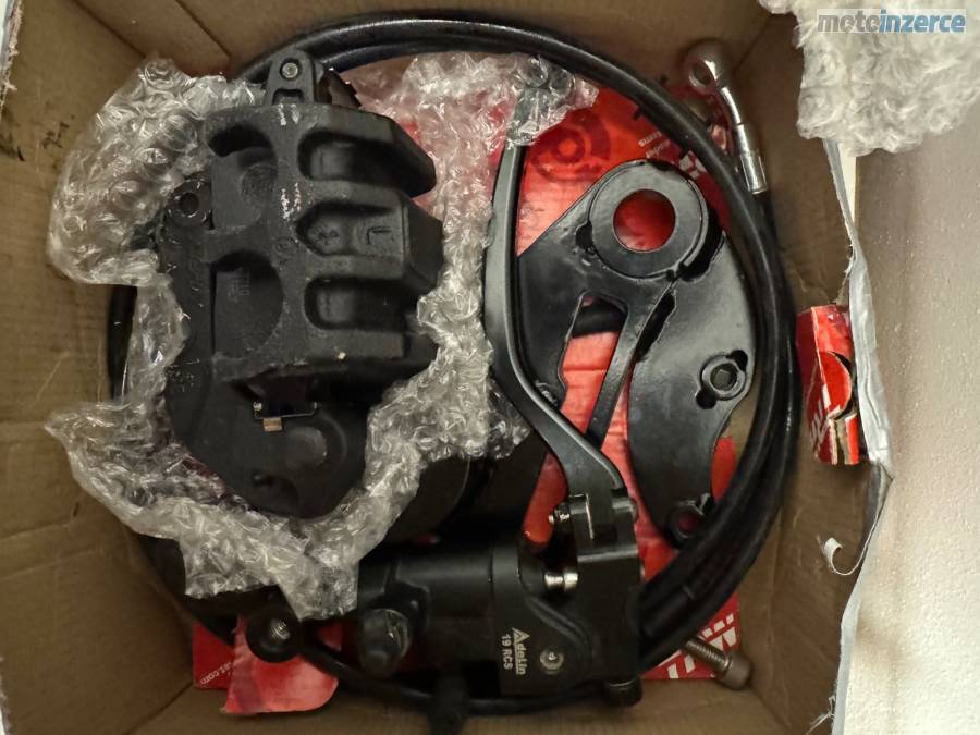 K motorce jsou enduro kola, třetí brzda s adaptérem, kotouč 320mm s adapterem, řidítka, blastry, plasty, řetěz, kryt motoru, originální výfuk.