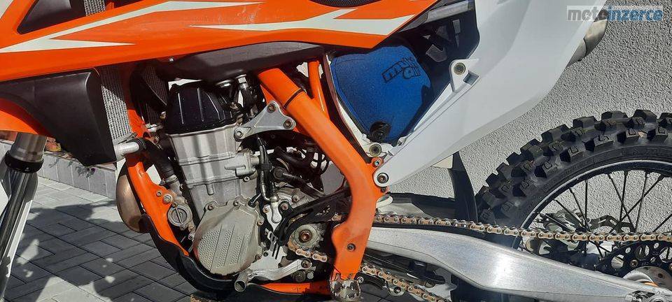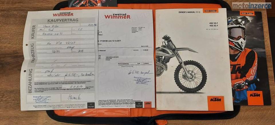 Prodám KTM sxf 450 2018, první majitel, pravidelný servis motorový olej po 5 6mth, servis tlumičů po 30mth nyní po servisu, přední tlumiče najeto celkem 20 mth (mel sem tam olejové), ve 120mth výměna pístu, vše plně funkční, desky OK, řetězovka ok, gumy jeté jeden trénink, spodní kryt motoru, ND náhradní olejová sada (olej, filtr) 6x vzduchový filtr, pumpička na tlumiče, část přepákování, páčky, kompletní náhradní plasty, servisní manuál
