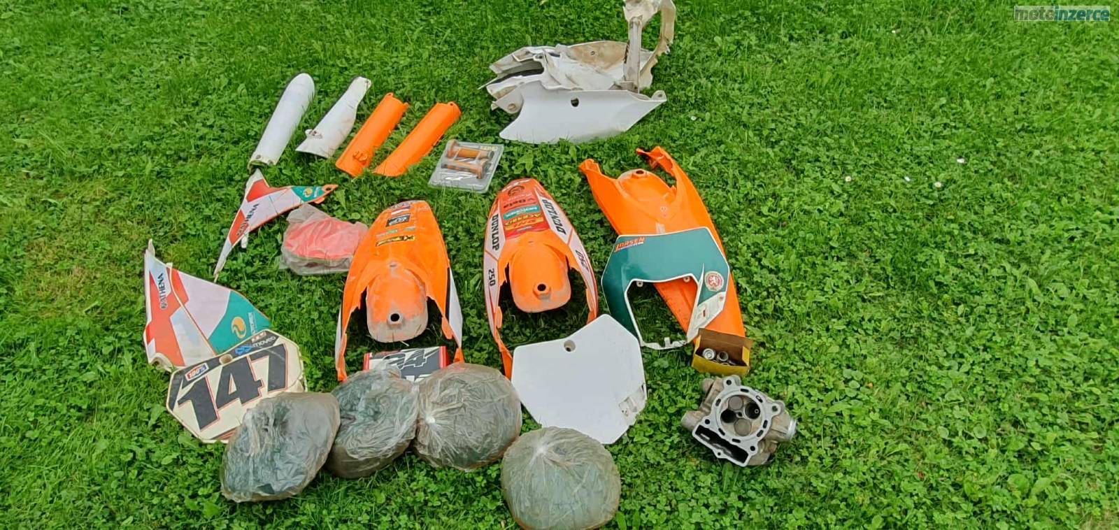 Ktm je dobře vybavená, FMF vyfuk s power bomb! ruzne ochrane kryty, barevné doplnky, spousty nahradnich plastu, filtru..i enduro maska.
