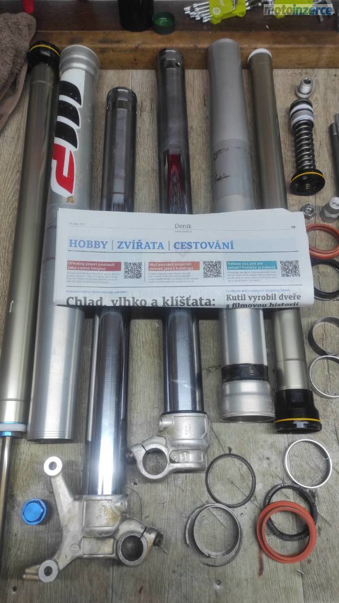 Momentálně přední tlumiče po repasu (vyčištěné, nový olej) Zkontrolovaný a namazaný krk i přepakování + nové horní a spodní uložení tlumiče. Výměna převodového oleje. Zadní brzdové desky.