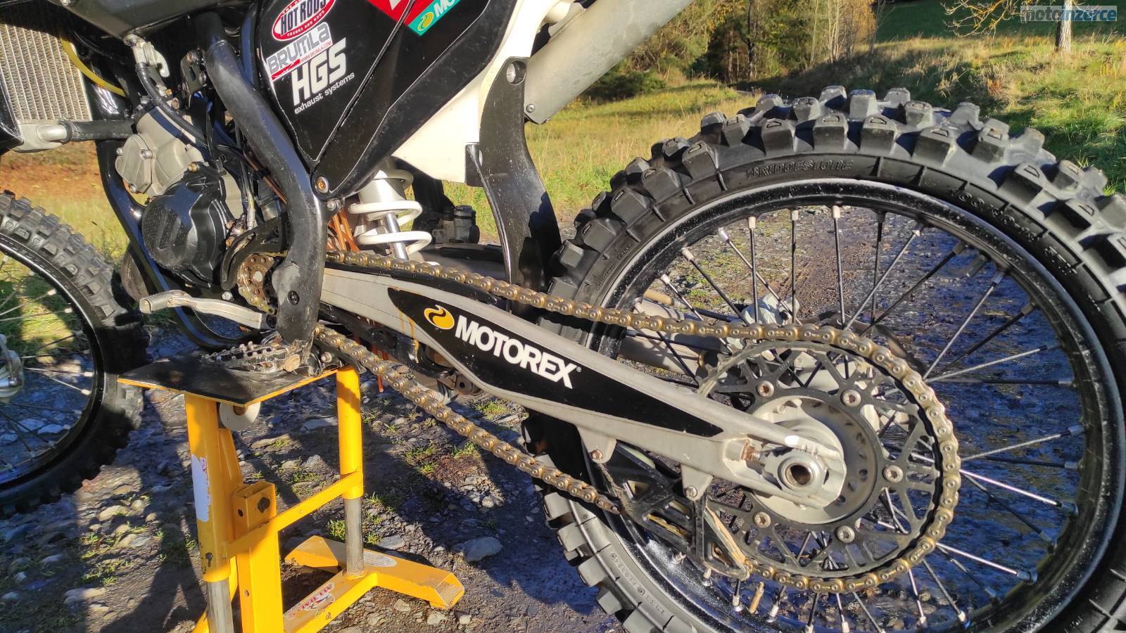 Z doplňků je na motoce lazený výfuk HGS a pomocník startu.
