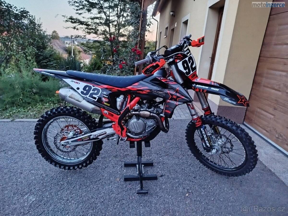 Prodám KTM 450 sxf rok výroby 22 kupovaná jako nová v ČR. Má 76 motohodin Za poslední rok najeto pouze 5. Tři sady plastů, z toho jedna originál nejetá. KTM, faktory chladiče, hgs výfuk, VHM vložka, zadní nezničitelné kolo talon, velký brzdový kotouč, závodní řídící jednotka na moto + originál nejetá k tomu tlumiče najeto max do 10 mh olej měněn každých 5 mh sednout jezdit. Při rychlém jednání nové díly k moto.