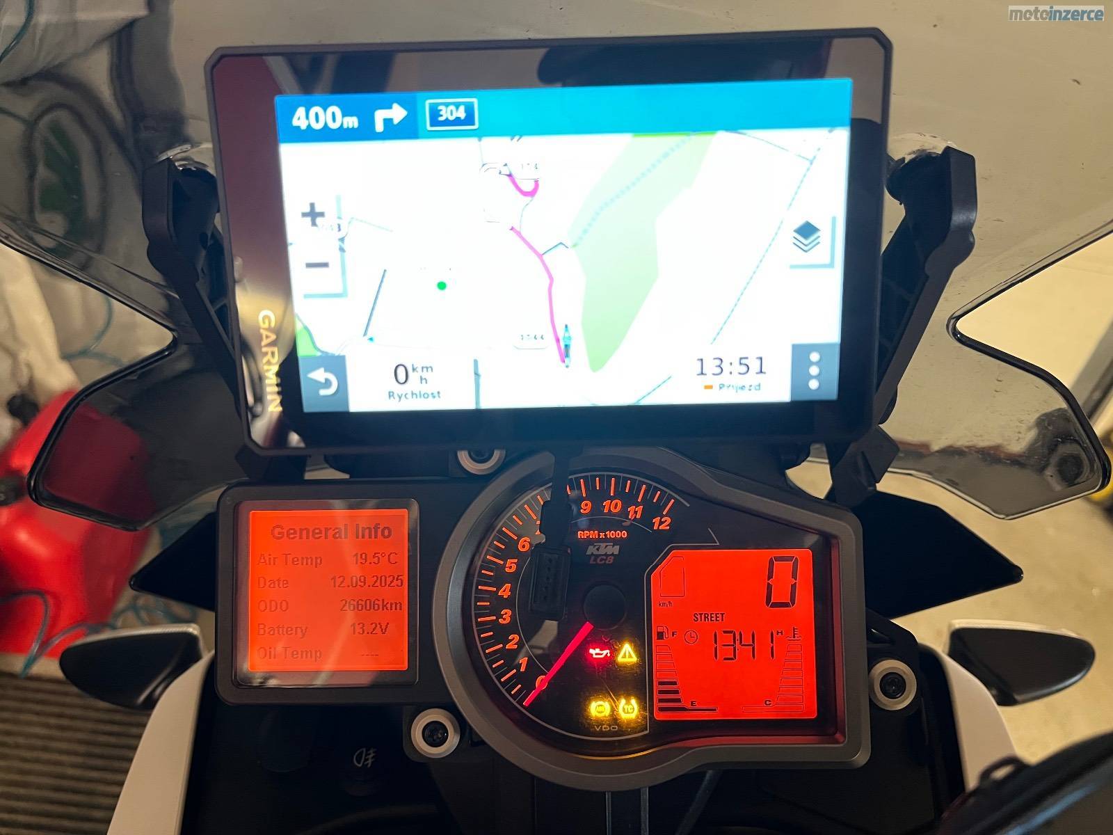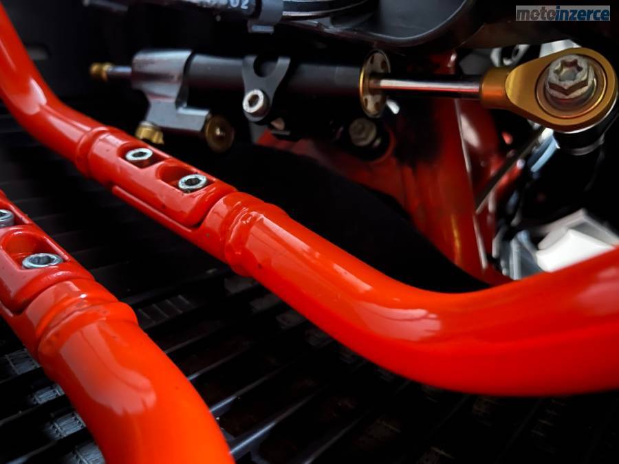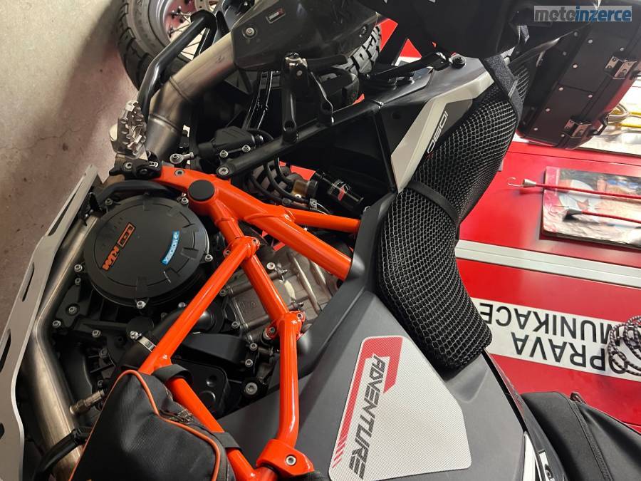 -Na motorce je spousta doplňků jako originální kryt motoru, padací rám, dongl, tašky do rámu, centrální stojan, kryt řetězu R&G, blástry, sítka na sedadlo, zobák, stavitelné páčky, stavitelný stupačky pc-4500, horní rám SW 6400, automatické mazání řetězu 3900, spojkový váleček Oberon 3400, brašny endurostan včetně lešení 14300 (jsou jednou jeté), kufr Givi včetně plotny 6200, navigace Garmin XT 10200, jednou jetý zamykací trn KTM na přední brzdu 9700, izolovaný svod KTM 6600, posilovač řízení Touratech 9800, výfuk Akrapovič včetně karbonového chrániče.