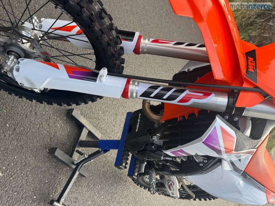 Prodáme KTM 250 SX-F, r.v. 2024, 96 mth, Olej měněny co 5 mth, nová řetězová sada. Velmi pěkný stav. Po repasu tlumičů. Více info po telefonu.