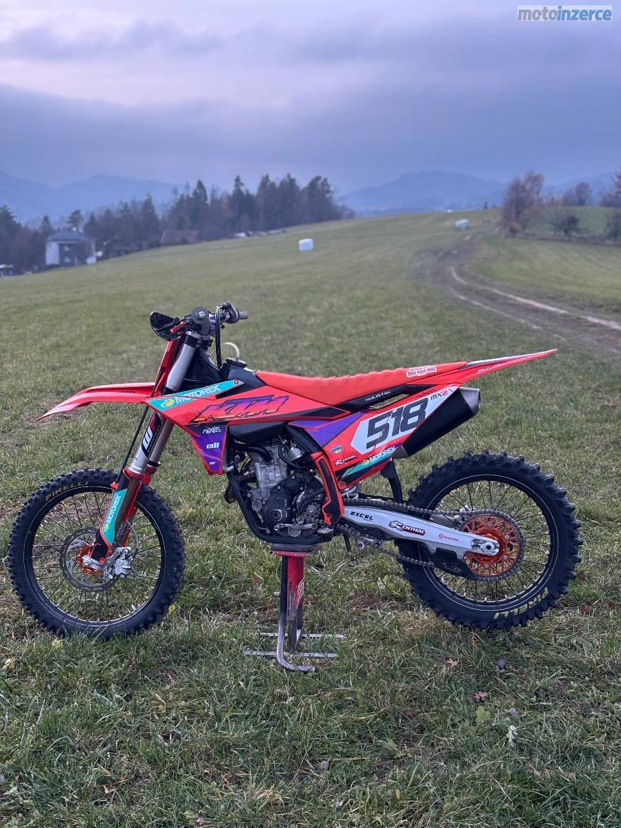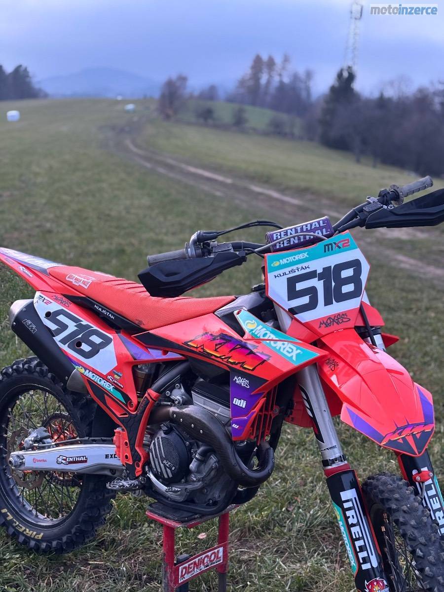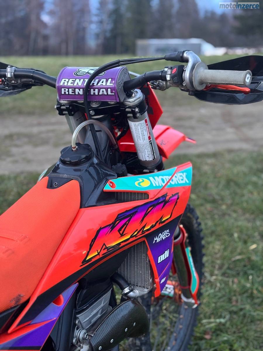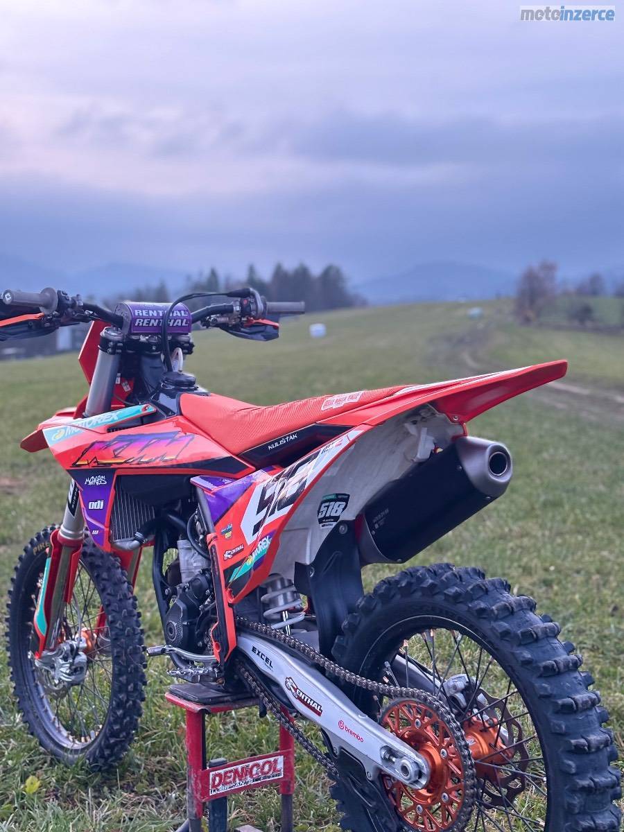 Prodám Ktm sxf 250 r.v. 2023. Od nova najeto 110 mth. V 95 mth. výměna pístní sady, kontrola ventilů, kontrola rozvoďáku. Olej měněn po 5 mth. K motorce přidám origo sadu plastů. Moto bez dalších investic.