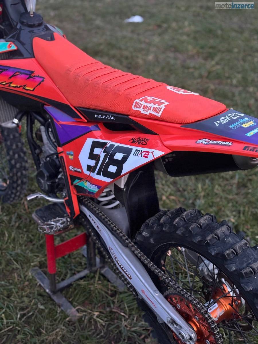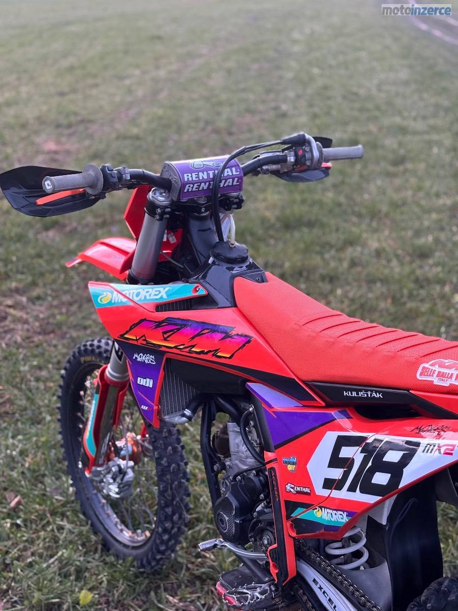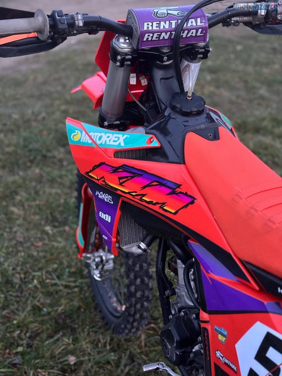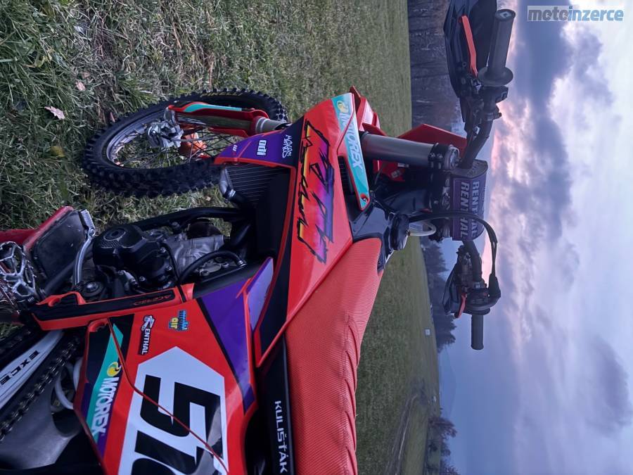 Prodám Ktm sxf 250 r.v. 2023. Od nova najeto 110 mth. V 95 mth. výměna pístní sady, kontrola ventilů, kontrola rozvoďáku. Olej měněn po 5 mth. K motorce přidám origo sadu plastů. Moto bez dalších investic.