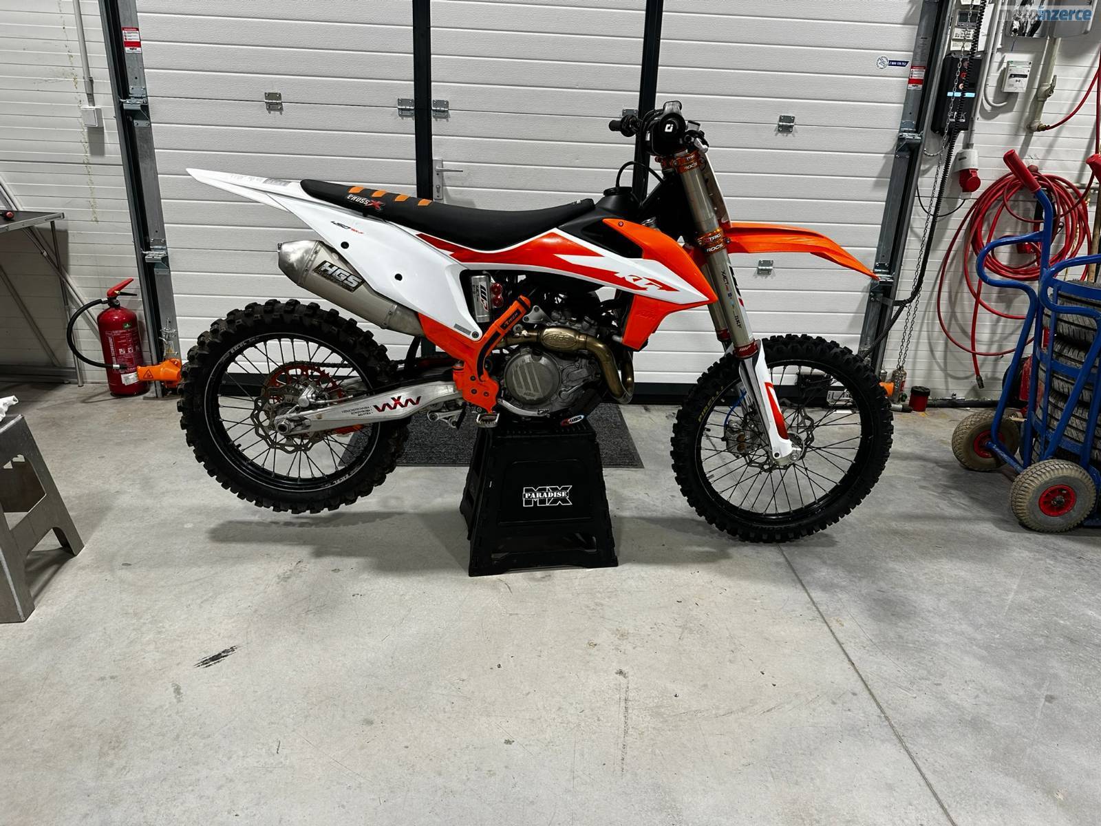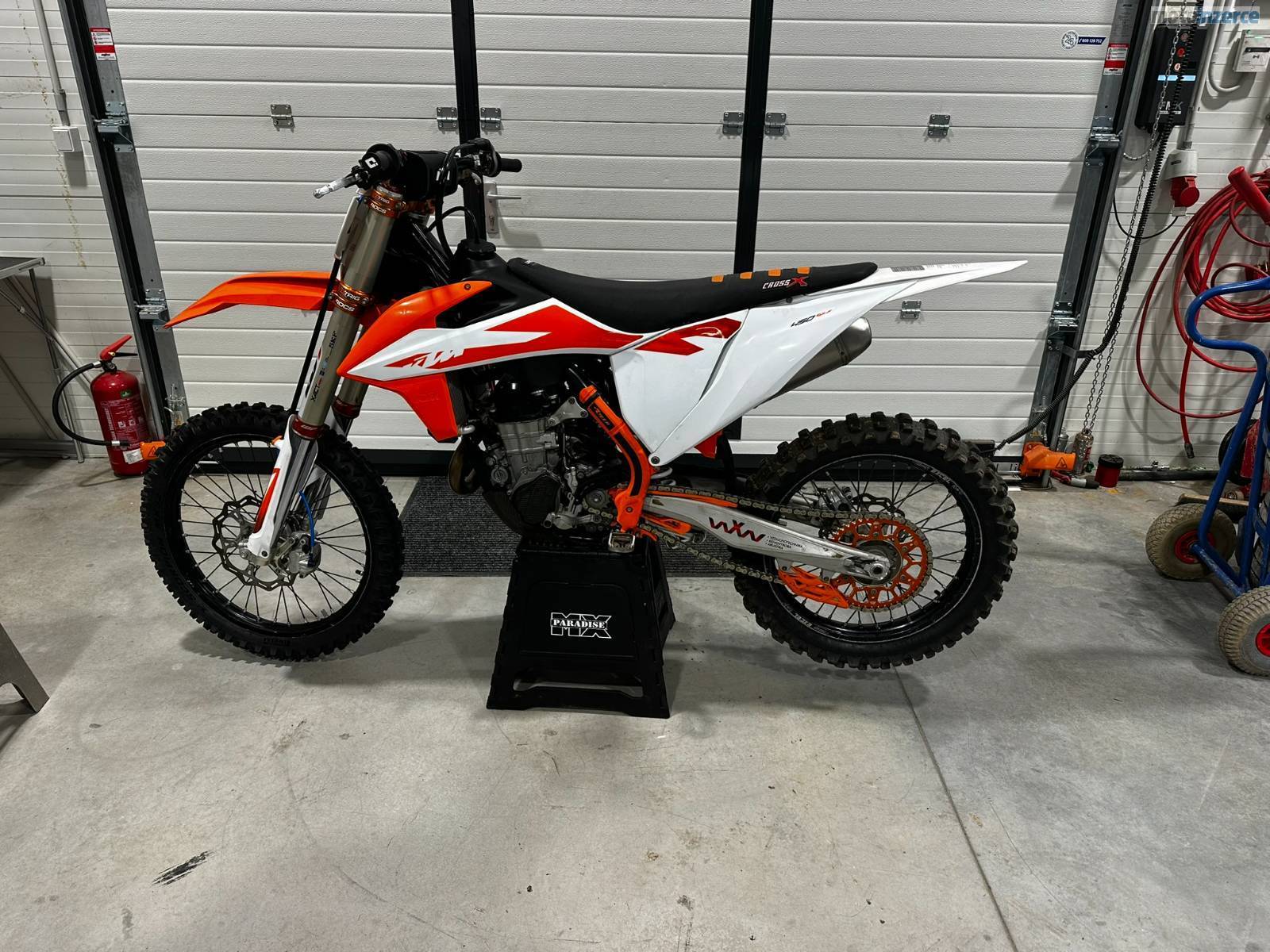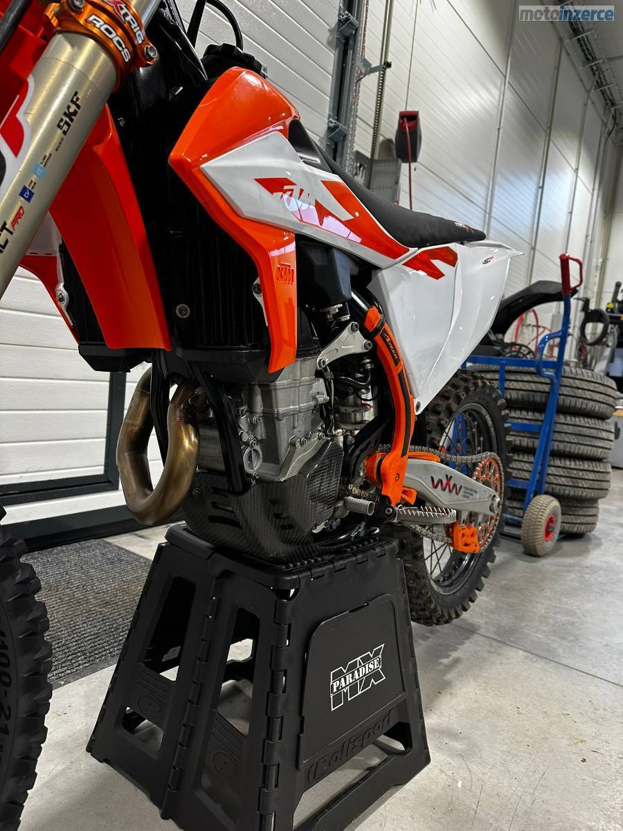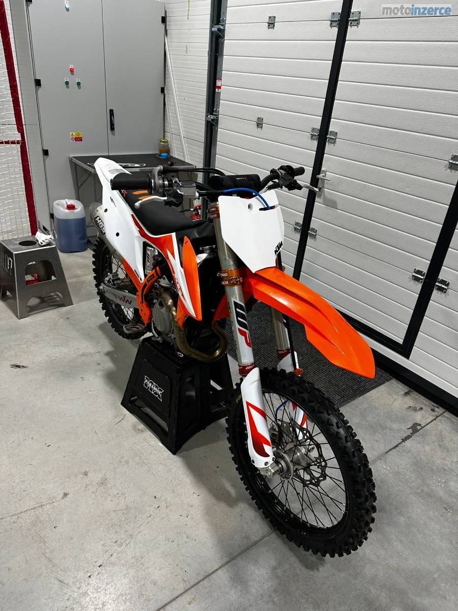 Prodám KTM 450sxf po jednom jezdci. Ježděna normálně. Servisována tak jak se má. Tovární úprava motoru, výfuk HGS, tlumiče přední i zadní WP conevalve xact pro, xtrig brýle. Při rychlém jednání sleva možná.