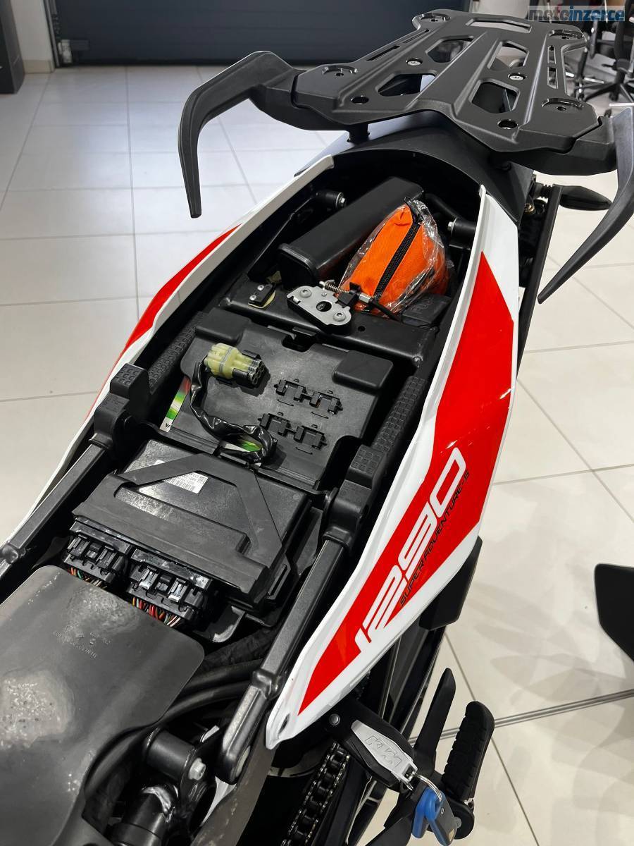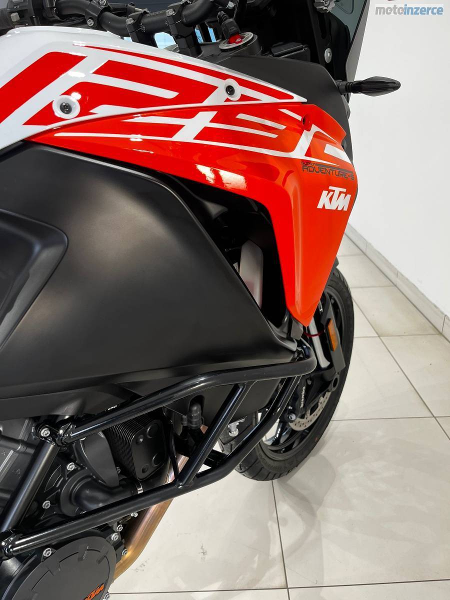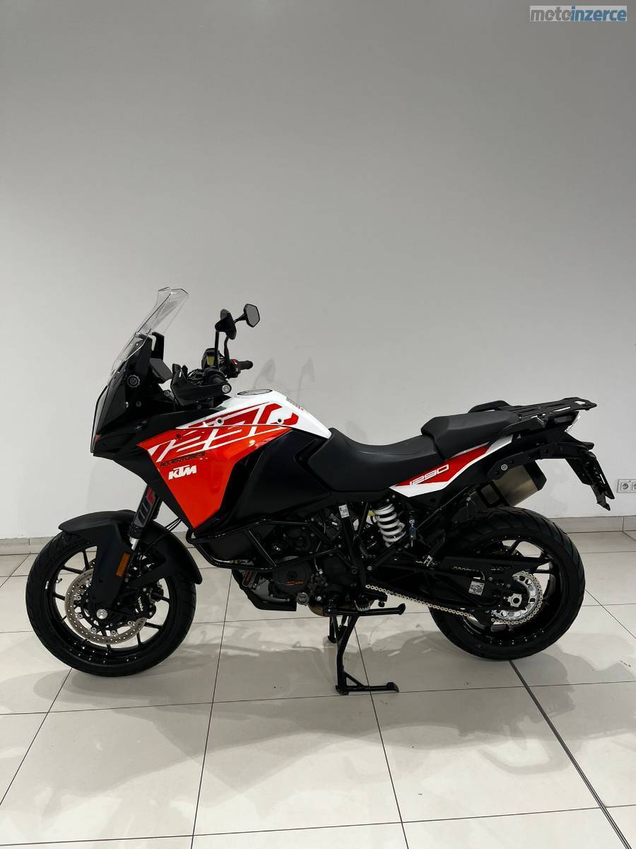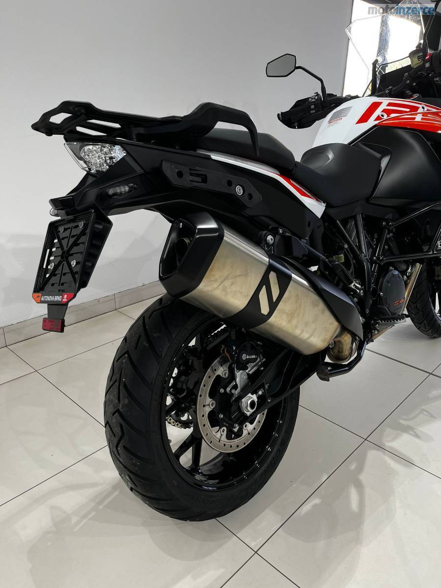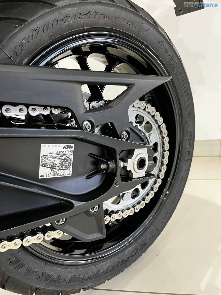 Nyní po velkém servisu: velká servisní prohlídka v 30 000 km (ventilové vůle, svíčky, vzduchový filtr, motorový olej, celková velká prohlídka), repas předních vidlic, výměna ložiska krku řízení, výměna brzdových kapalin, nová chladící kapalina, nová baterie YUASA ETZ14S provedeno v autorizovaném servisu KTM AUTONOVA BRNO. Další servis dle předpisu výrobce motocykl čeká za 15 000 km nebo za 1 rok. Řetězová sada má aktuálně najeto necelých 10tis KM je tedy zhruba v polovině životnosti. Vzorek pneumatik přední 4 mm, zadní 6,5 mm (měřeno ve středu běhounu) Pirelli Scorpion Trail 2. Stroj nyní nepotřebuje žádné investice. Originální stav. Hezký moderní infotainment, lze propojit s telefonem a využít Turn-by-turn navigaci přes aplikaci KTM. Schránka na mobilní telefon s USB nabíječkou. 12V zásuvka pod přístrojovou deskou. Základní hliníková plotna pro montáž originálního topcase kufru KTM.