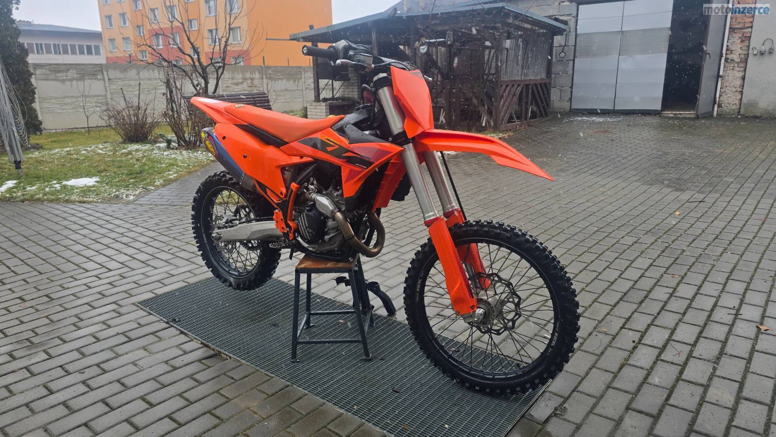 Zdravím, prodám KTM 450 sxf, rok výroby 2025, motorka má najeto 52,7mth. Kupovaná v prodejně, když měla 40mth. Po koupy dělány tlumiče, přepakování komplet, celá řetězová sada, nové destičky. Výměna oleje vždy po 5mth. K motorce ježděné černé plasty + nový podsedlák, plasty na motorce nejeté. Originální výfuk a koleno (koleno není na fotce).