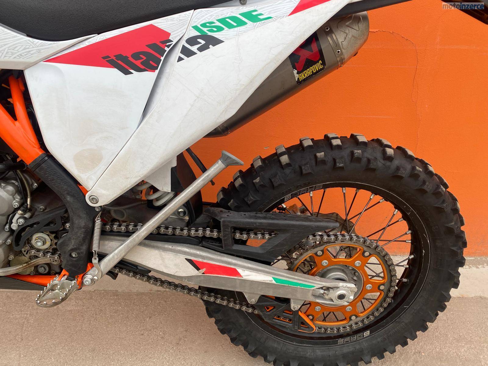 Prodám KTM EXC350 F Six days. Rok výroby 2021, najeto 130mth, druhý majitel koupeno od kamaráda. Motorka má platnou SPZ. Ježděna hobby pro radost bez velkých kotrmelců. Je to nadmíru opečovávaný stroj, má na sobě stále originál plasty, ve výbavě má výfuk Akrapovič. Nazuté jsou ještě stále slušné pneu Mitas.